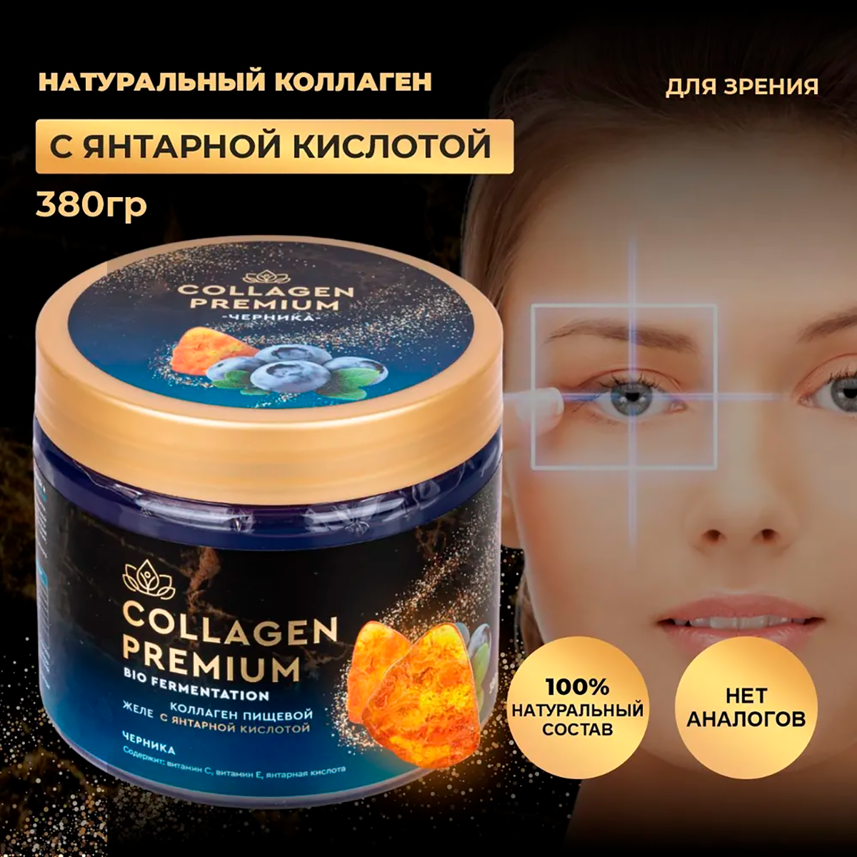Натуральный пищевой коллаген в желе Collagen Premium с витамином С , E и экстрактом шафрана с соком черники для здоровья глаз 500 гр