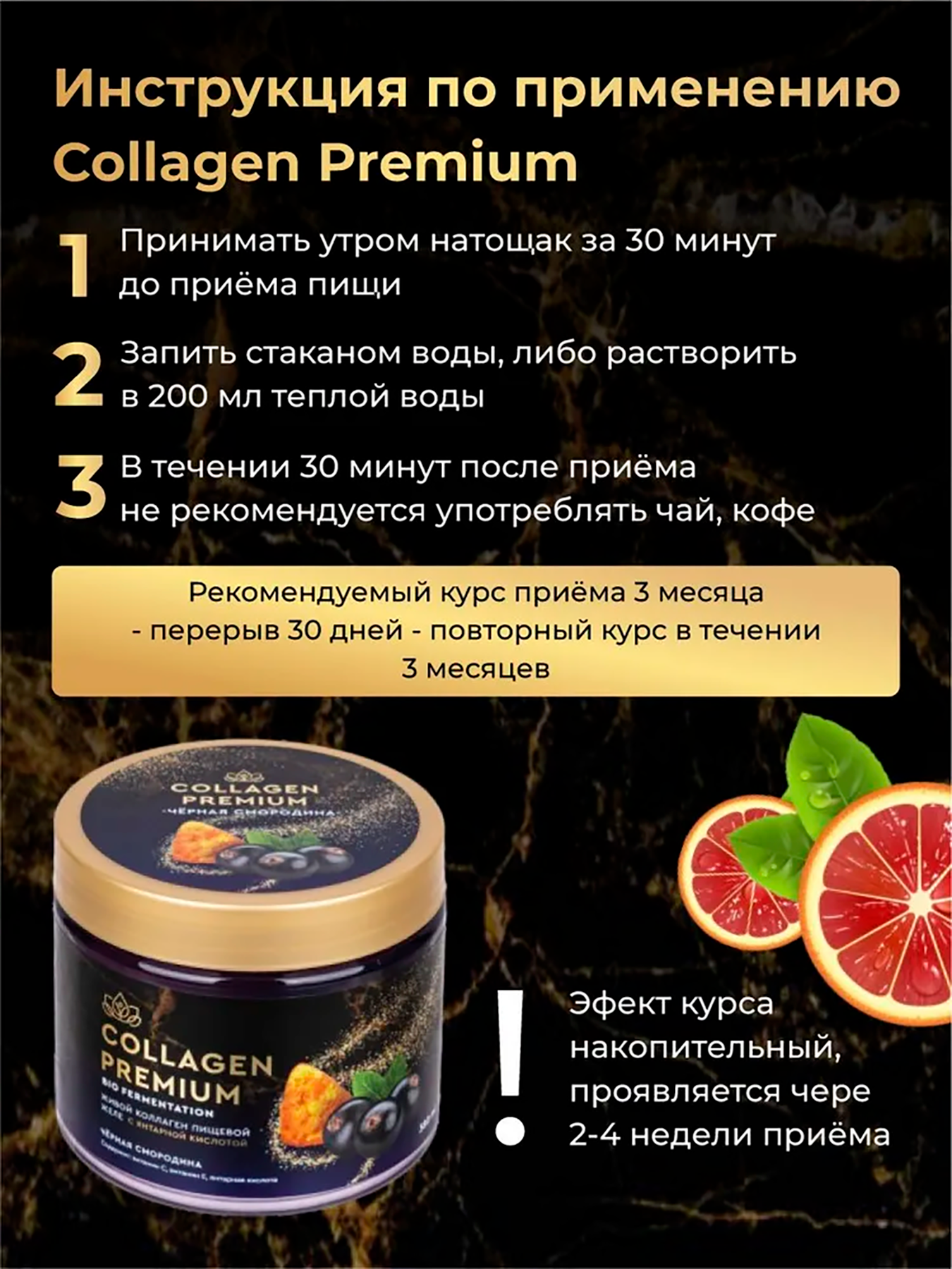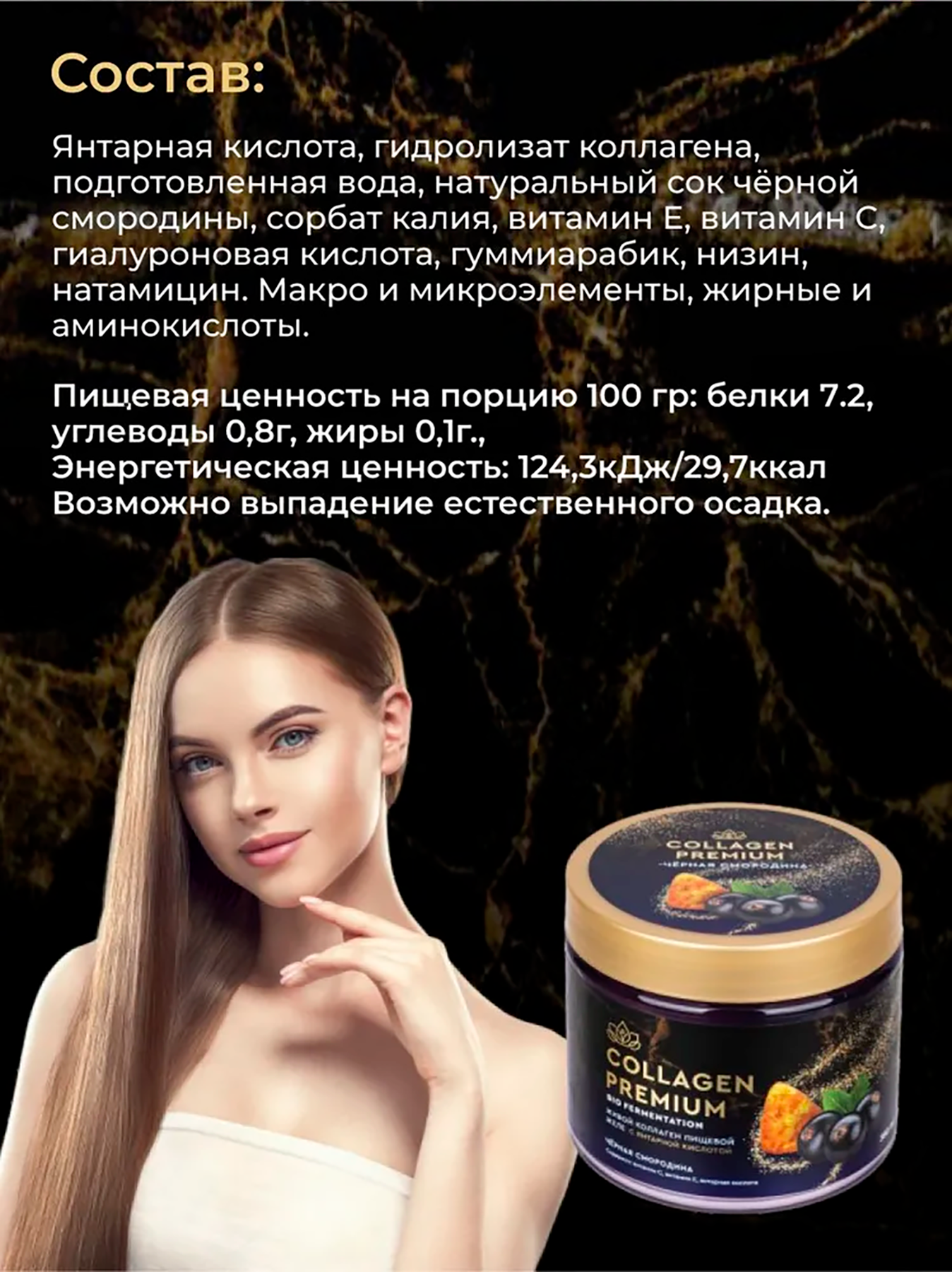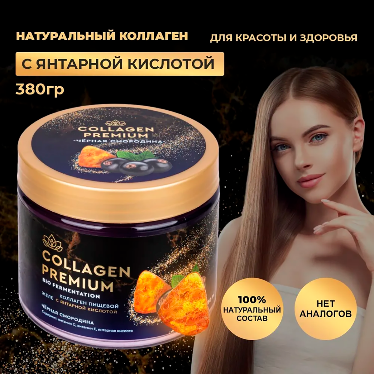 Купить Натуральный пищевой коллаген в желе Collagen Premium с черной смородиной и янтарной кислотой 380 гр