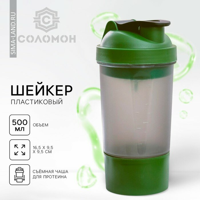 Соломон Шейкер спортивный с чашей под протеин, серо-зелёный, 500 мл интересное: