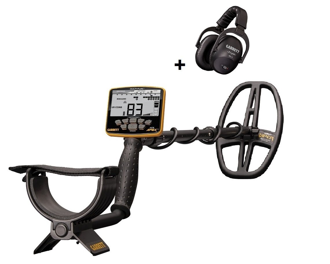Металлоискатели Garrett Ace Apex с катушкой 6x11'и наушниками MS-3 Z-Lynk