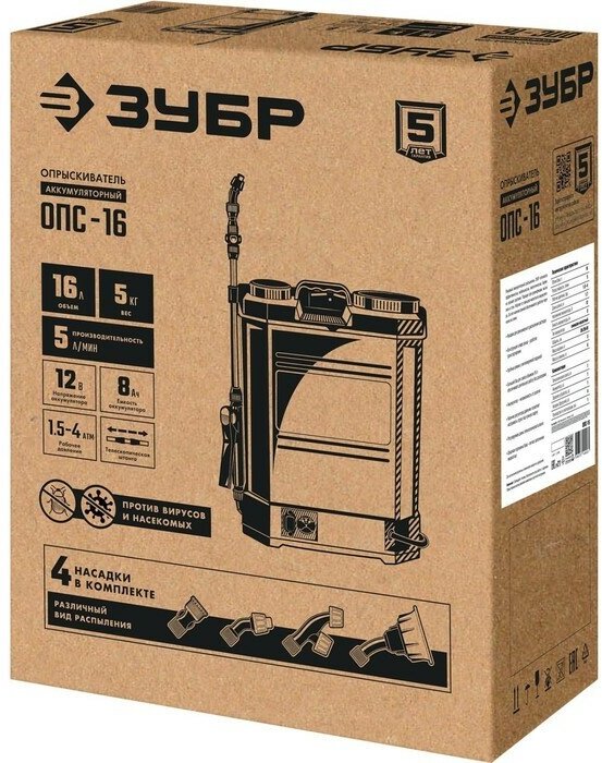 Опрыскиватель аккумуляторный Зубр ОПС-16, 16 л, 12 В, 8 Ач интересное: