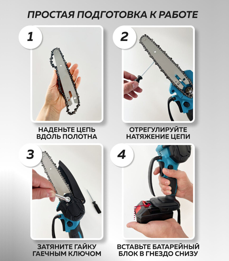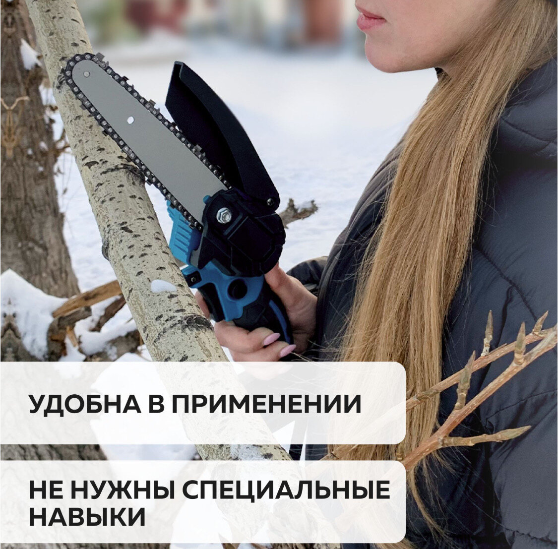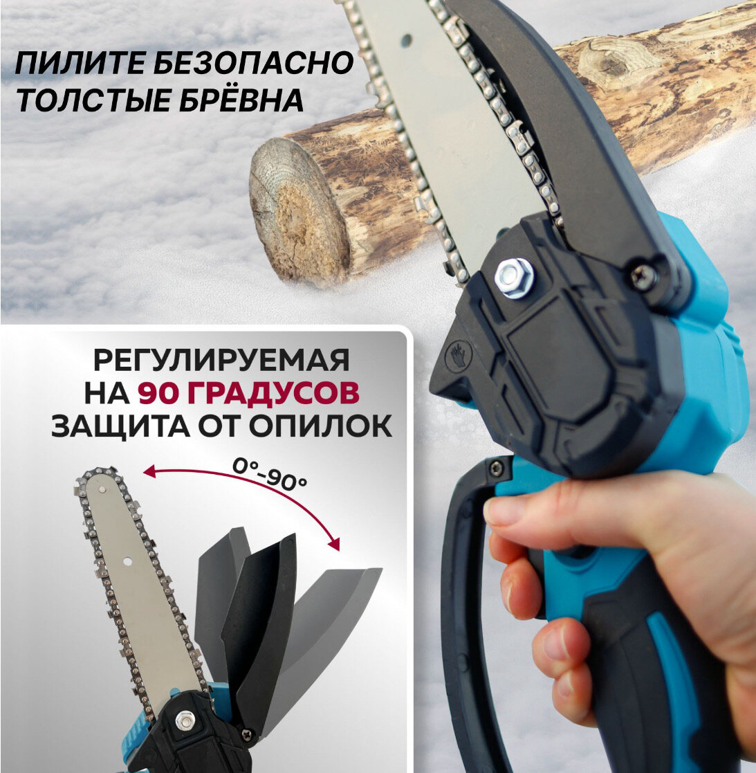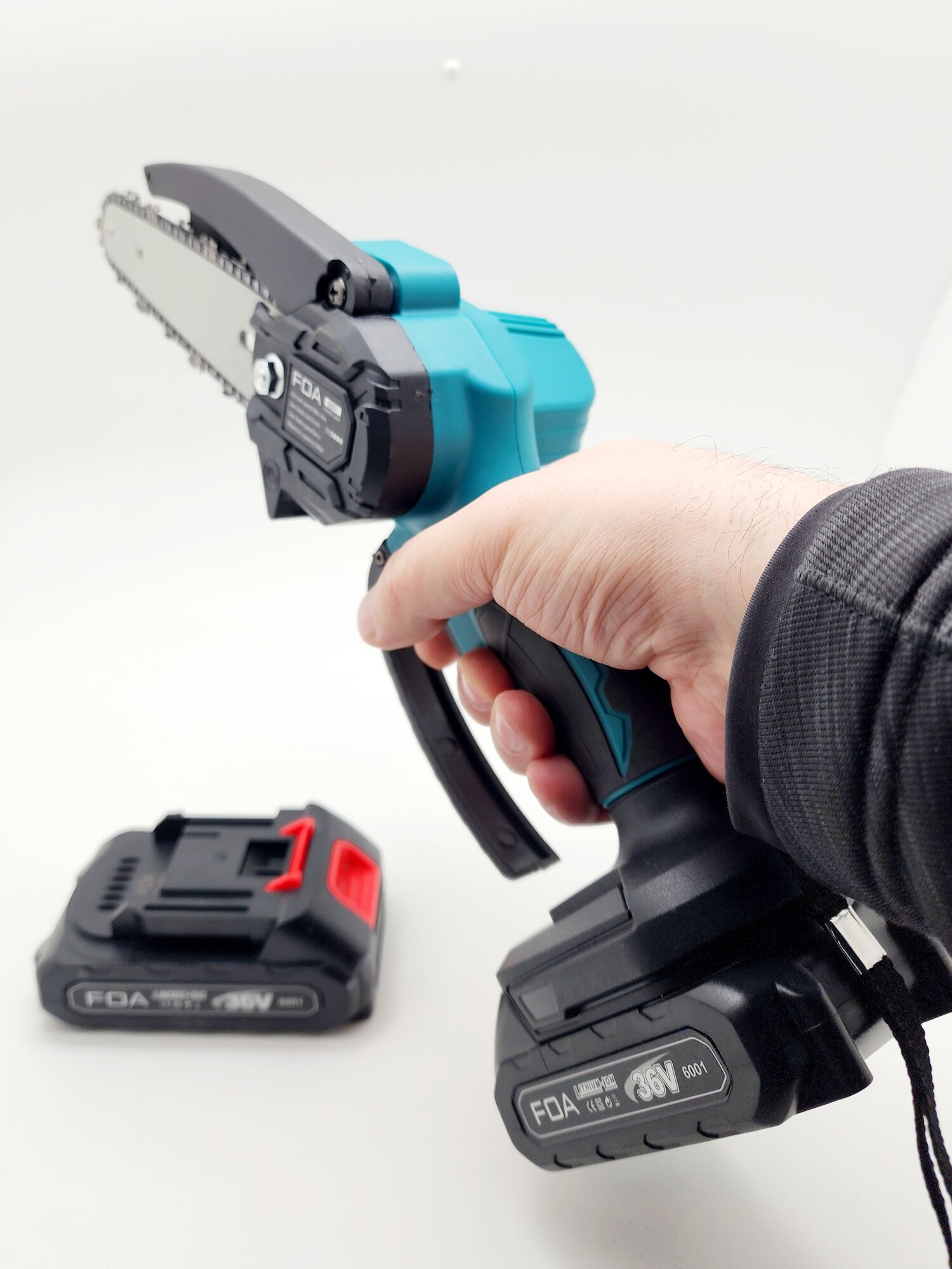 Аккумуляторная мощная электрическая цепная пила на 6 дюймов с прорезининной ручкой и 2 мя аккумуляторными батареями в комплекте - DLJW-21A , 36 V ,Вольт, 500W интересное: