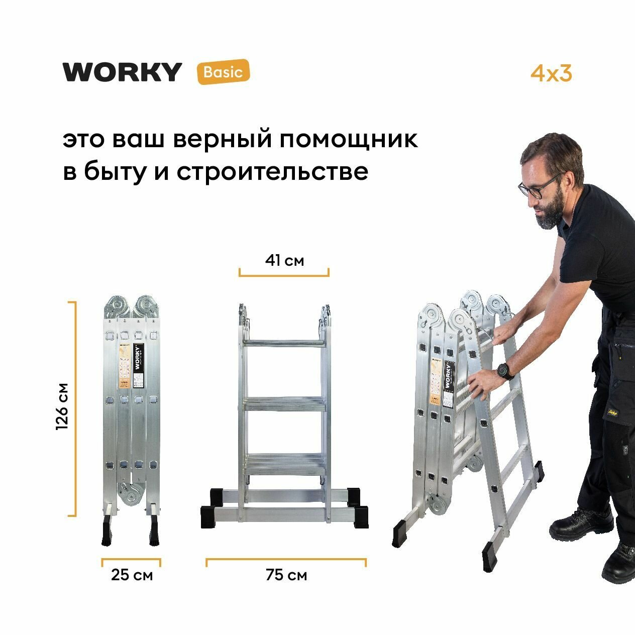 Купить Лестница-стремянка 4x3 трансформер WORKY Basic, с увеличенной высотой 3,7м