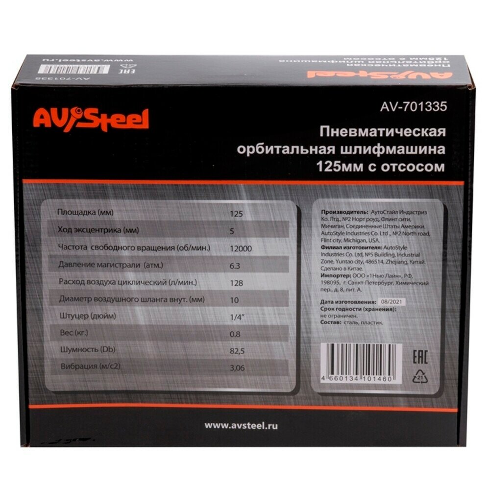 Эксцентриковая пневмошлифмашина AVSteel AV-701335 черный/оранжевый