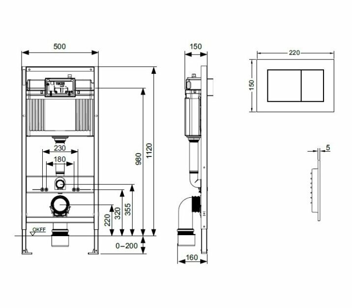 Комплект TECEbase 2.0 для установки подвесного унитаза с панелью смыва TECEnow, K447401