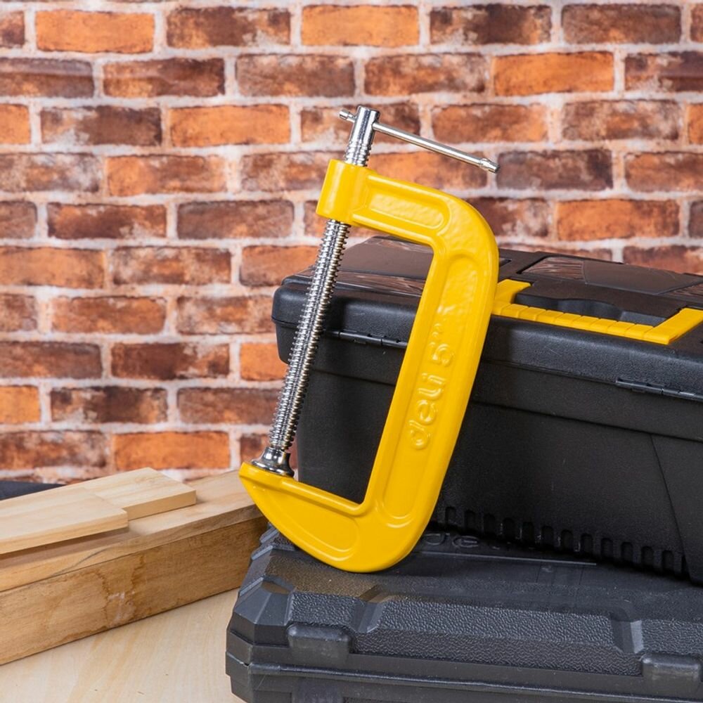 Струбцина G-образная усиленная Deli DL-G204 (высота зажима 100мм, глубина зажима 50мм)
