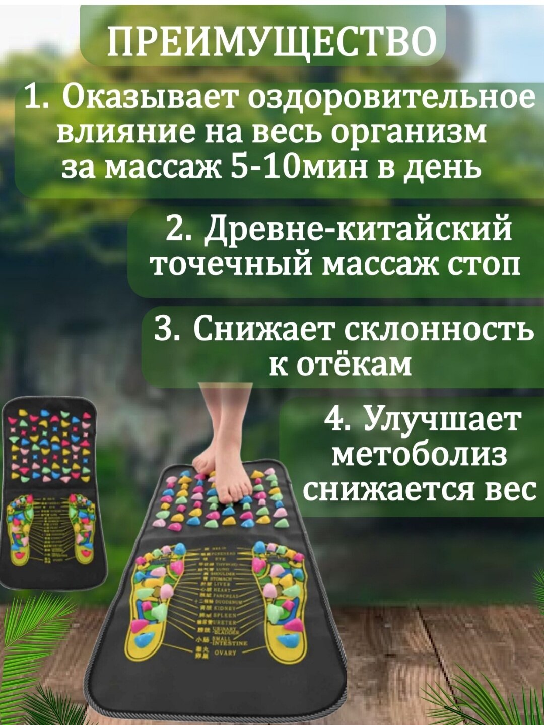 Дорожка массажная с цветными камнями Foot Massage Mat,1.20м интересное: