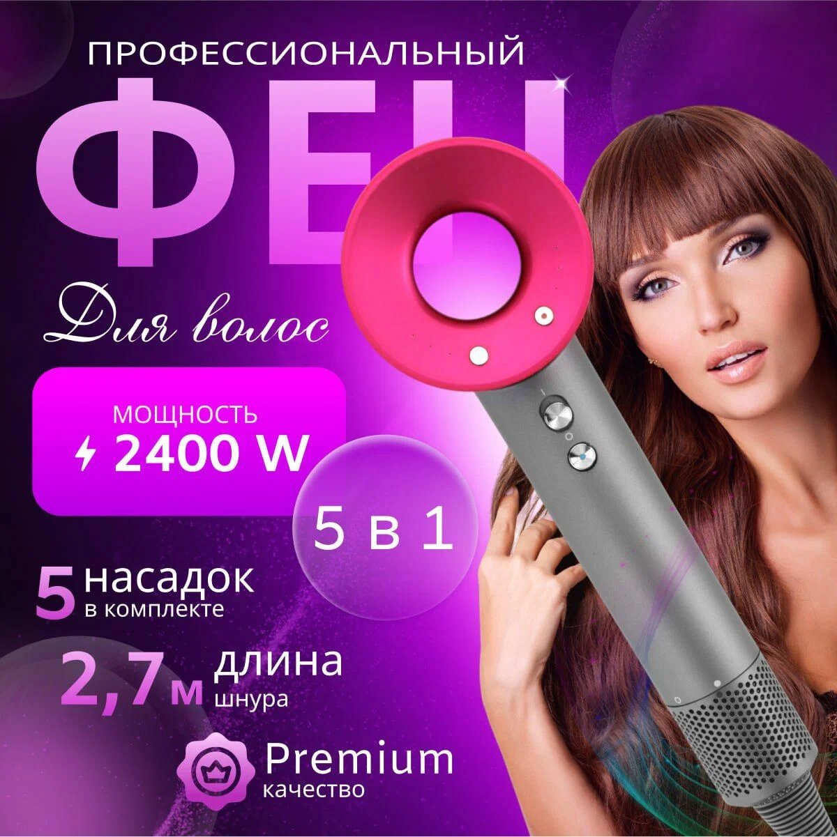 Купить Фен для волос профессиональный 4 температурных режима ,с холодным, теплым и горячим воздухом, 5 насадок в комплекте ,с ионизацией Самый мощный 2400ВАТТ/ Гарантия качества