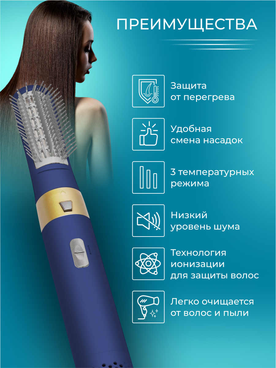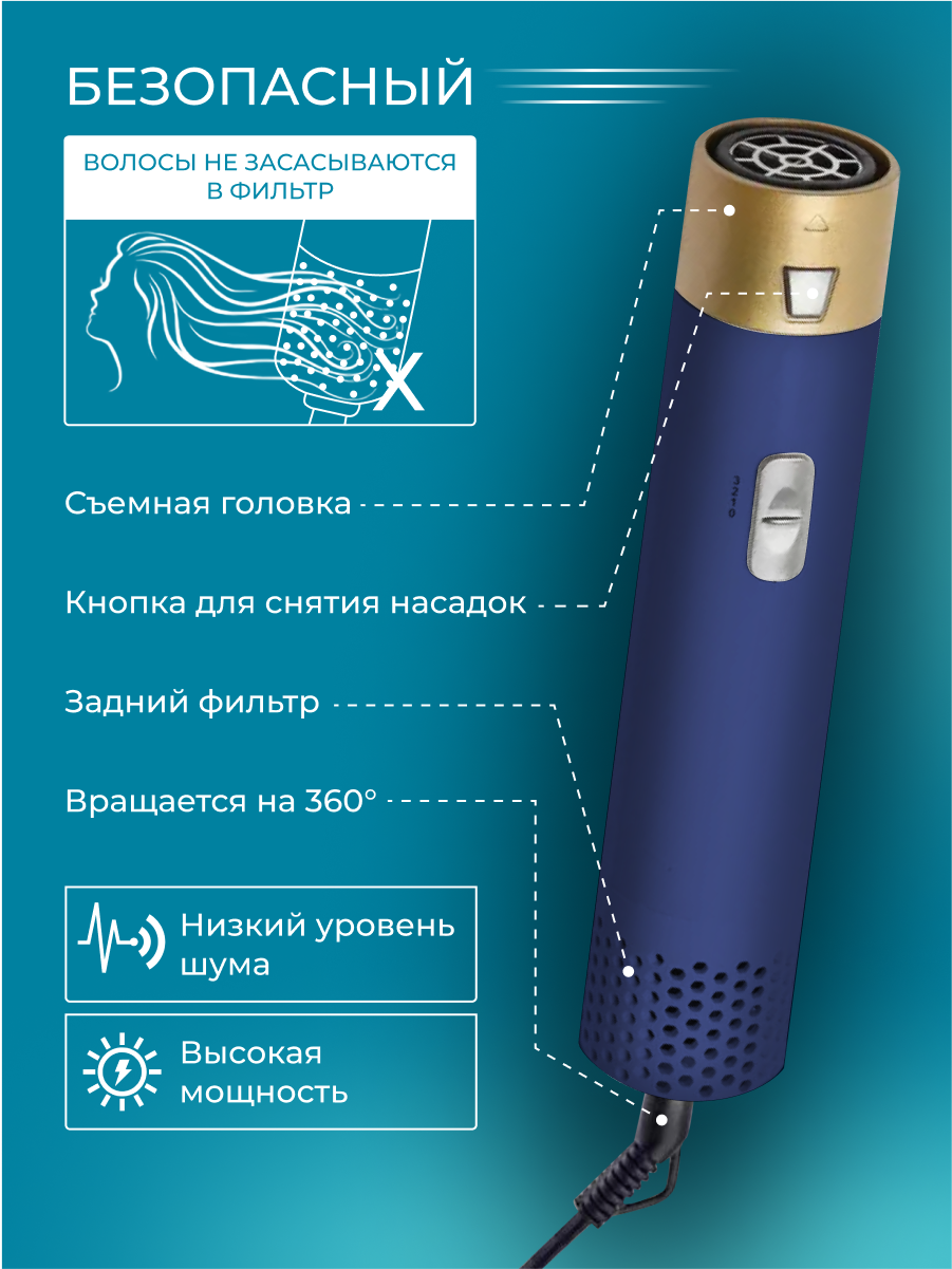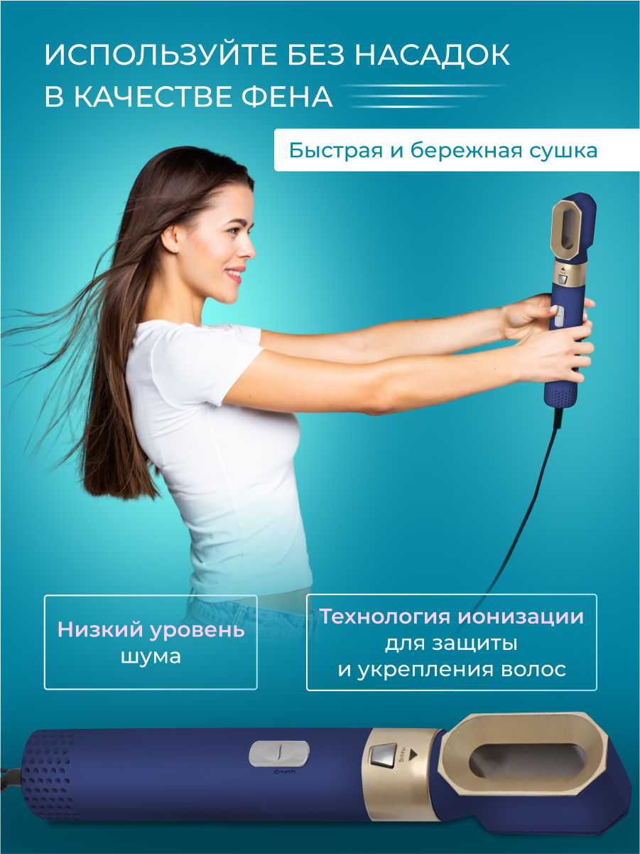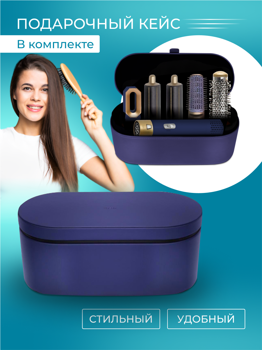 СохранитьСтайлер для волос фен 5в1 с кейсом, плойка, выпрямитель фен с насадками для волос, для укладки, фен стайлер сине золотой интересное: