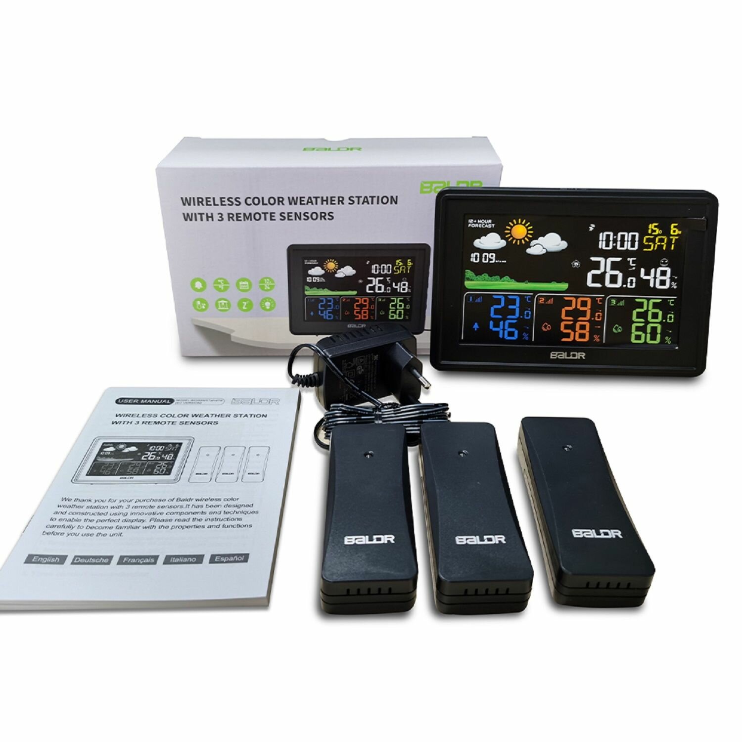 Беспроводная метеостанция с тремя внешними датчиками BALDR B0359WST4H4PR черный