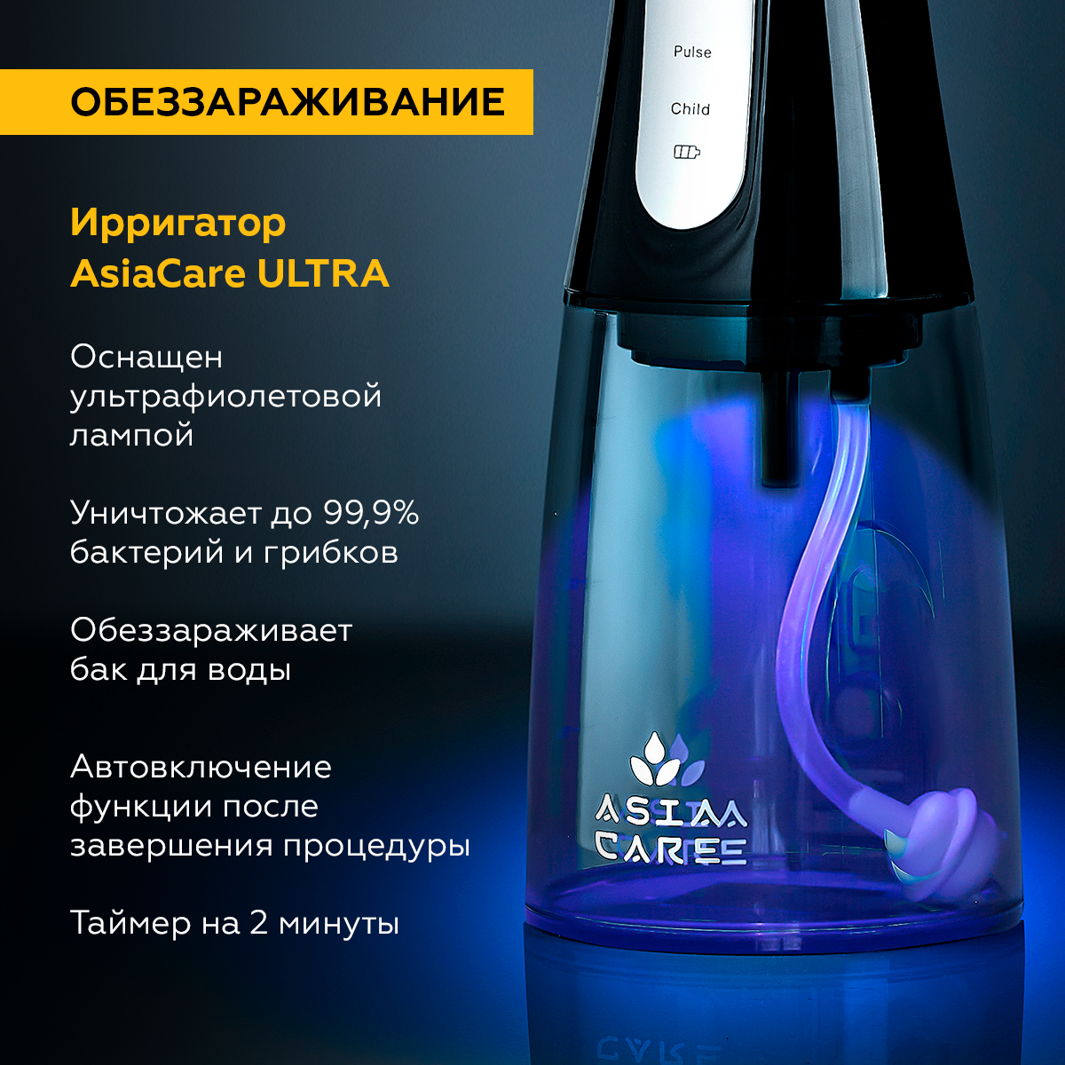 СохранитьПортативный ирригатор для зубов с UV-лампой AsiaCare, черный интересное: