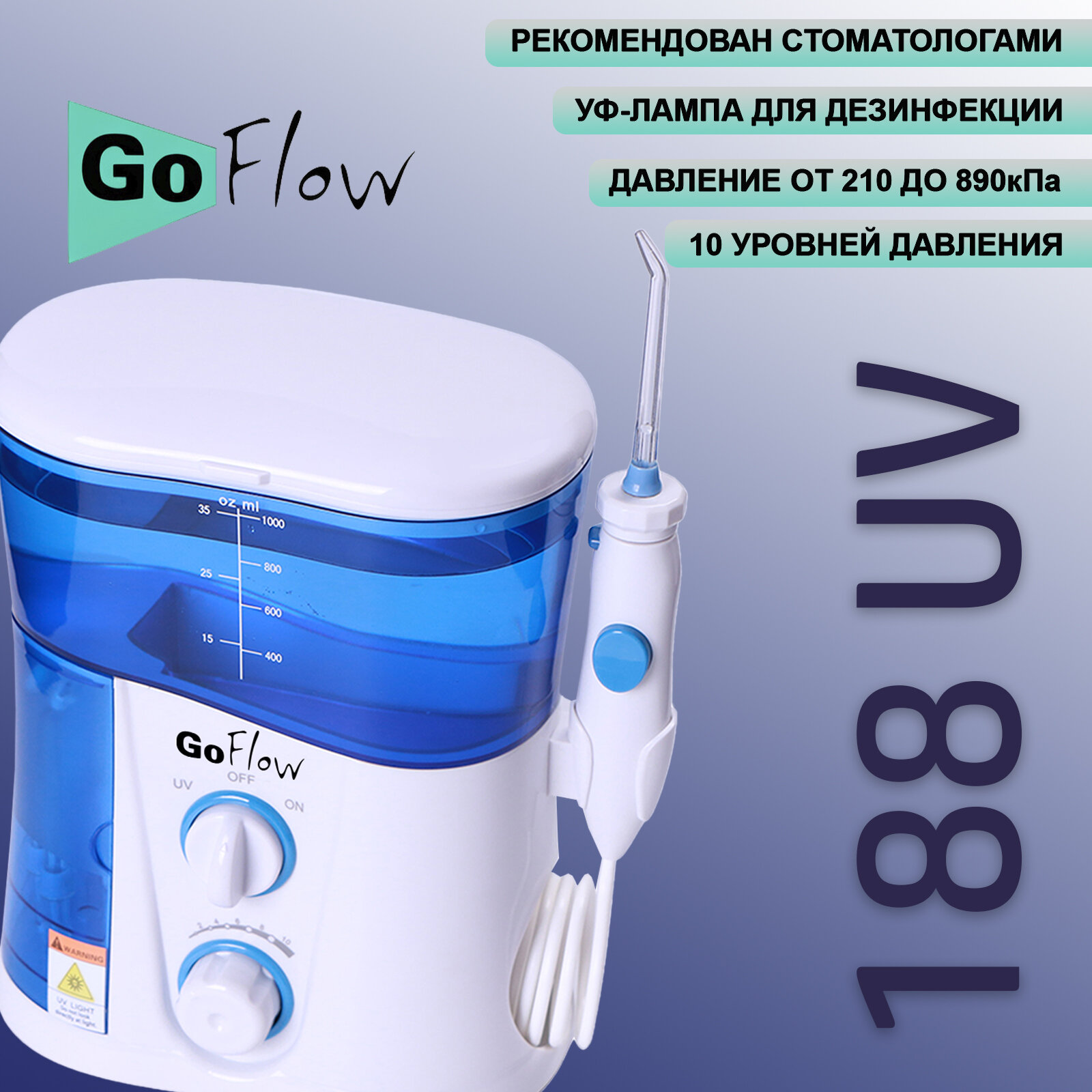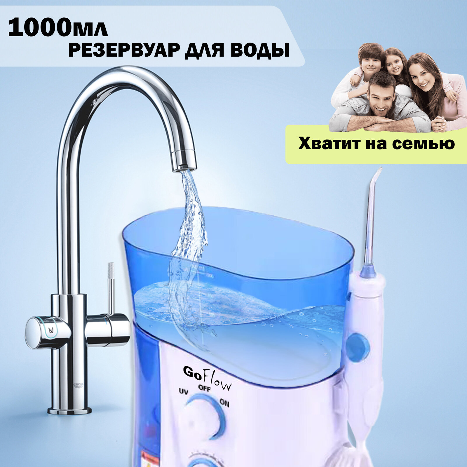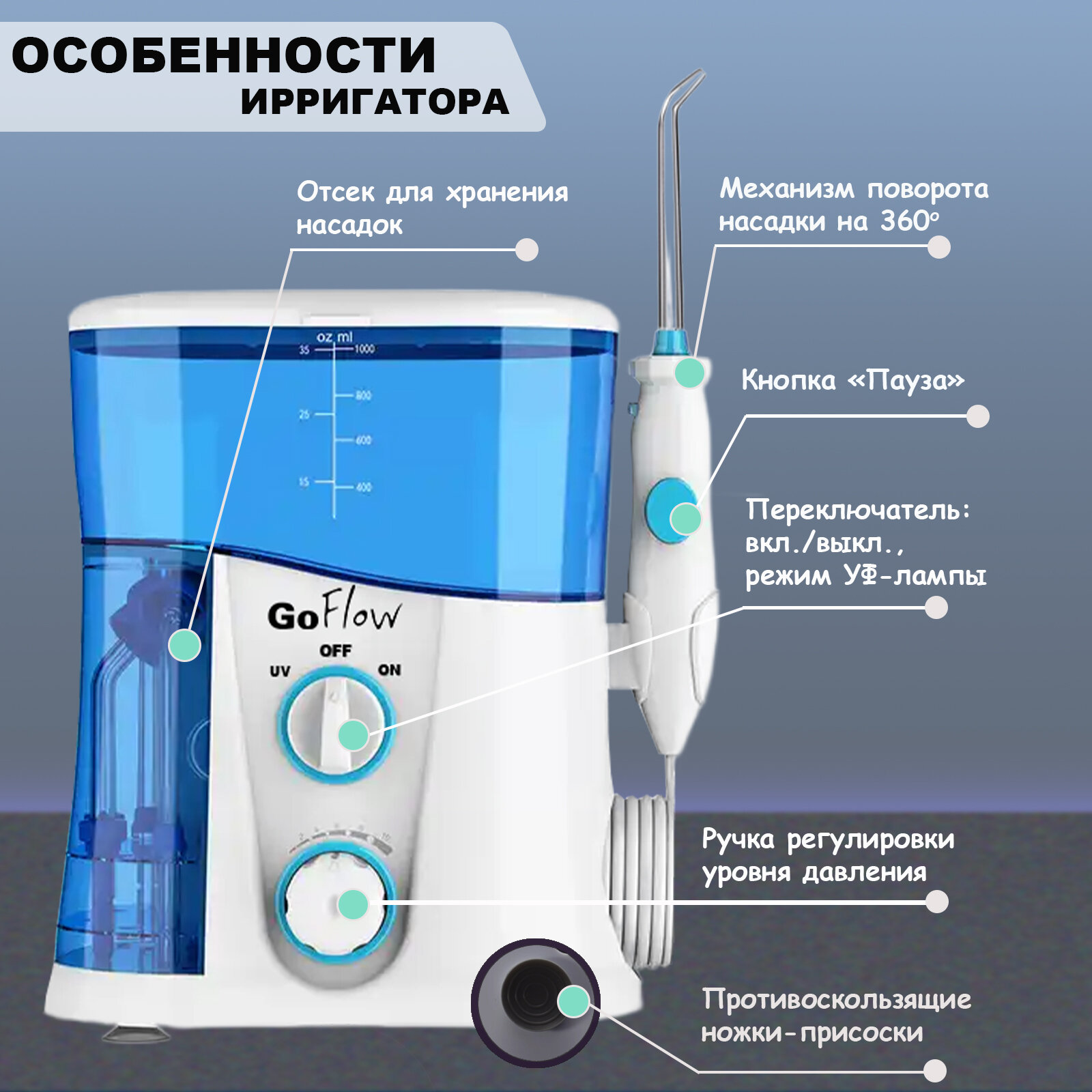 Ирригатор стационарный GoFlow 188UV Premium с обеззараживающей UV лампой 9 насадок Бачок 1000мл 210-890кПа, премиальная гарантия интересное: