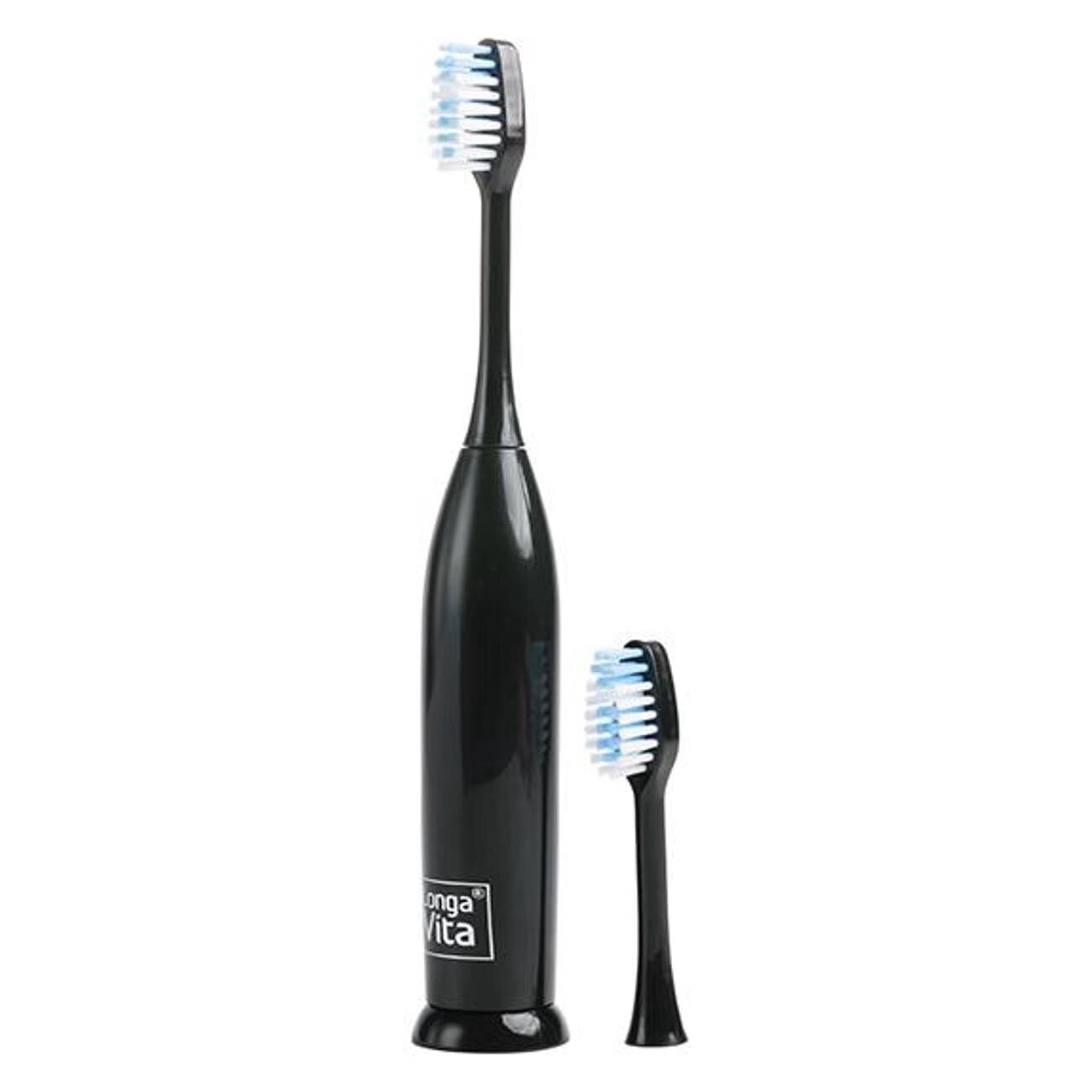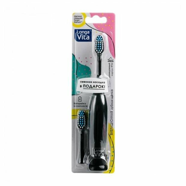 Электрическая зубная щетка вибрационная Longa Vita для взрослых, сменная насадка в подарок, батарейка в комплекте, цвет: черный