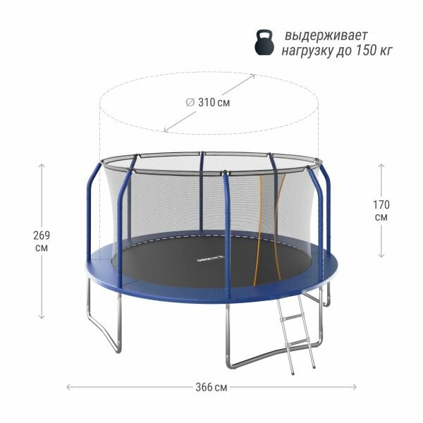 СохранитьБатут UNIX Line SUPREME BASIC 12 ft (blue) лестница, диаметр 3.66 м, макс. нагрузка 150 кг интересное: