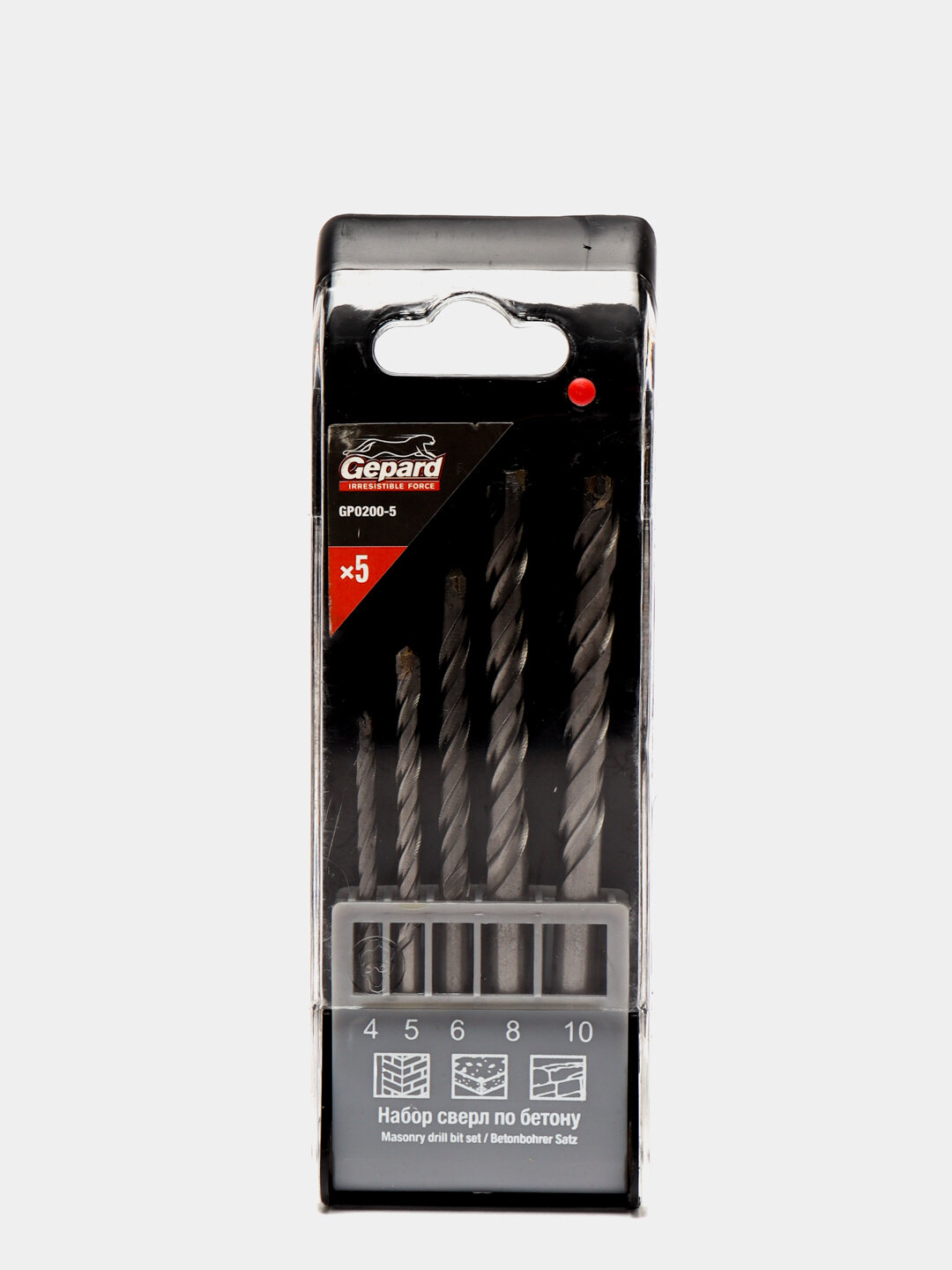 Набор сверл по бетону 5шт 4-10мм GEPARD (GP0200-5) (победитовое ударное (4, 5, 6, 8, 10))