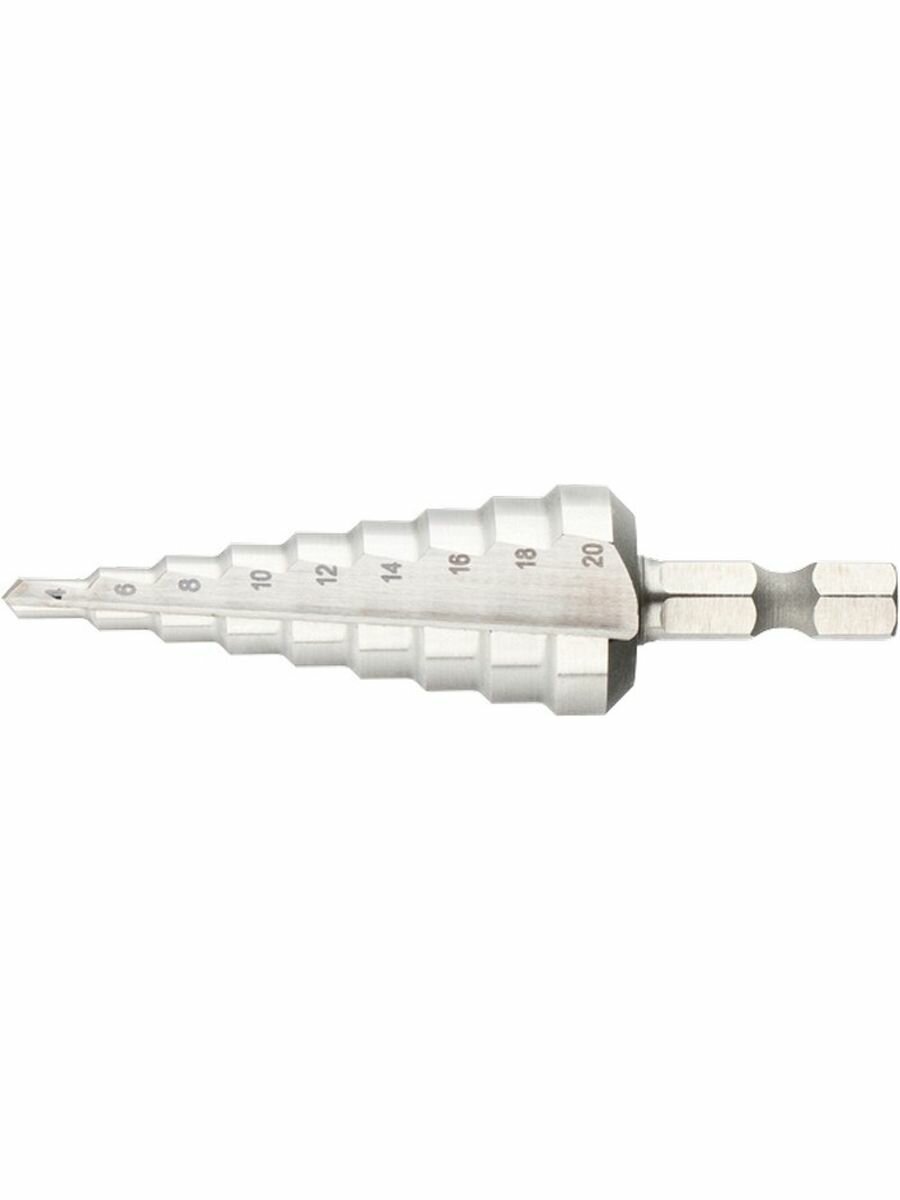 Сверло ступенчатое по металлу 4-6-8-10-12-14-16-18-20 мм, Р6М5, шестигранный хвостовик Барс