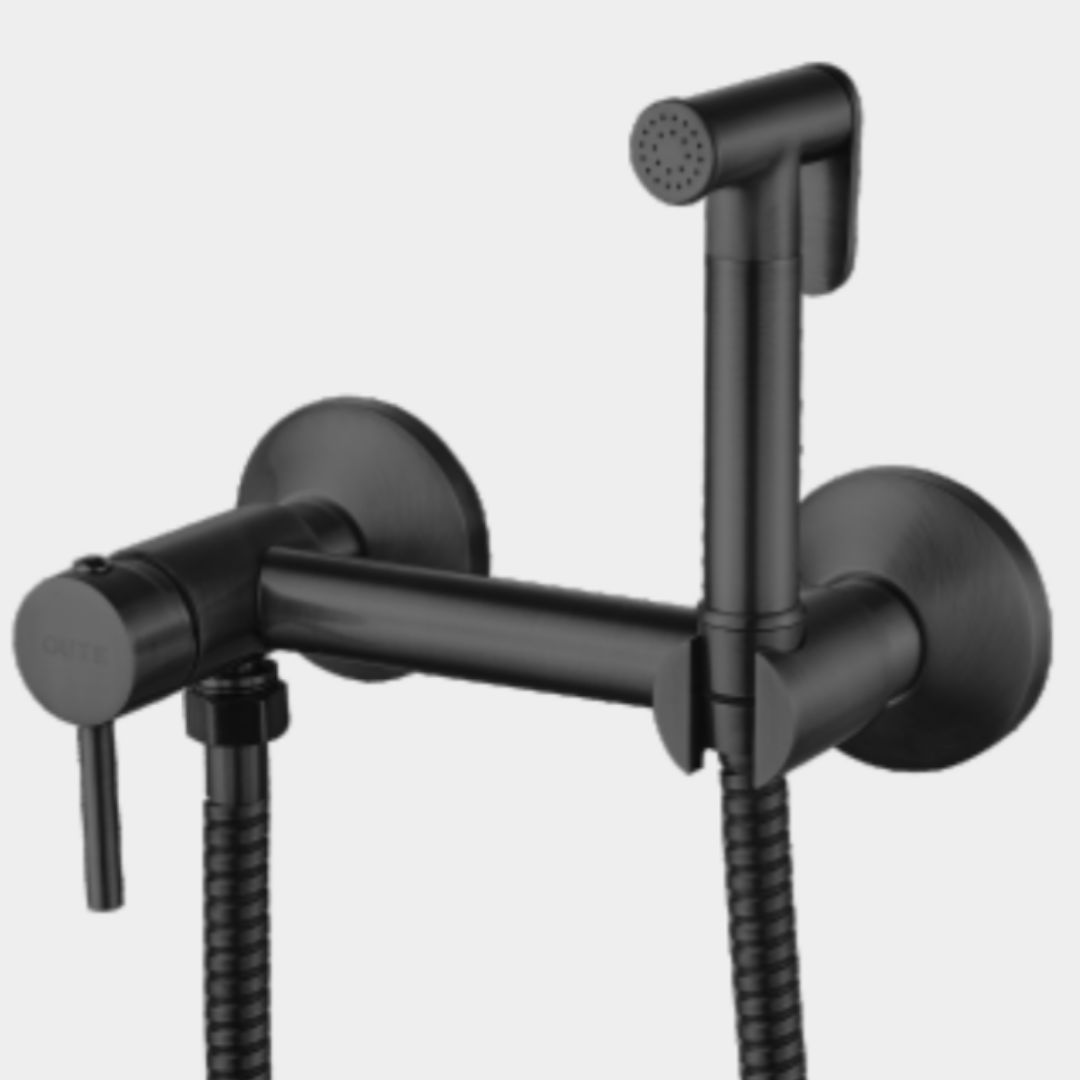 Смеситель для биде с гигиеническим душем OUTE выполнен из латуни,цвет черный.