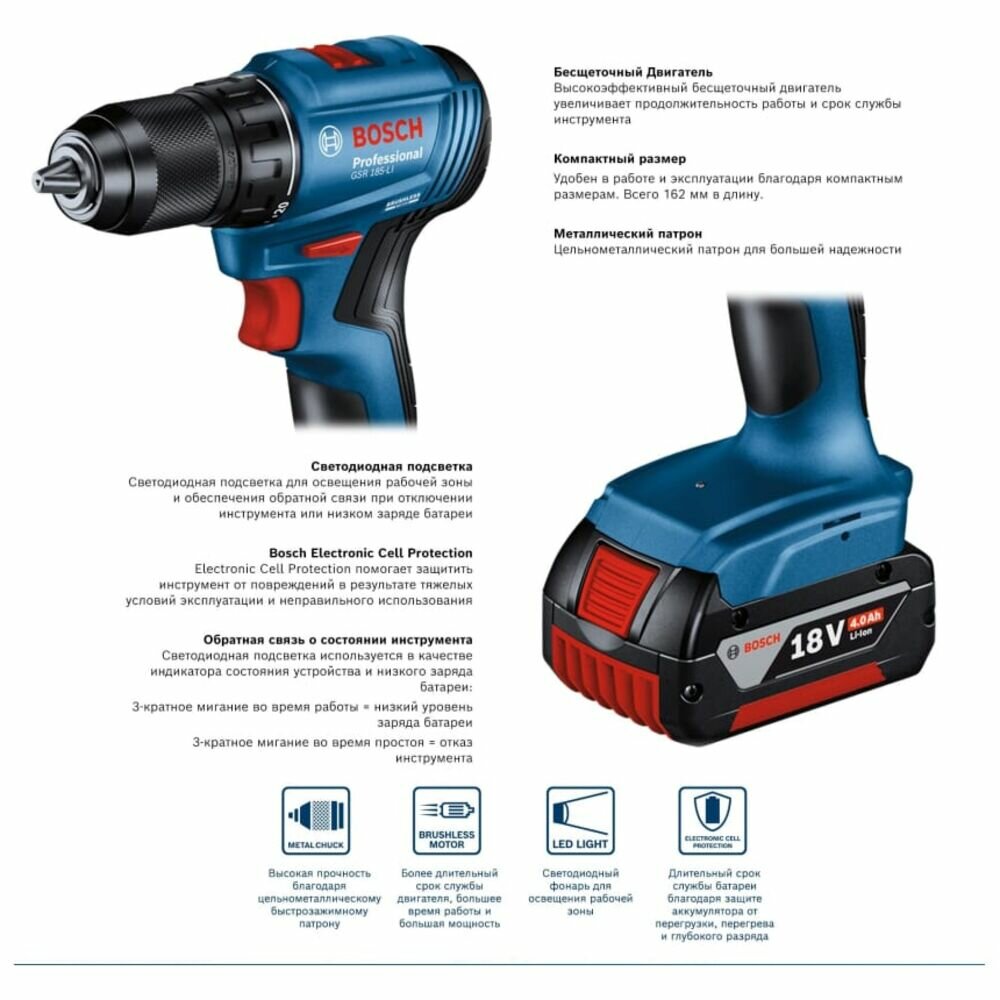 Дрель аккумуляторная Bosch GSR 185-LI 2 акк. интересное: