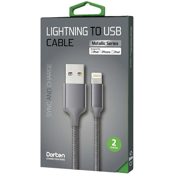 Кабель Dorten lightning 2м metal gray