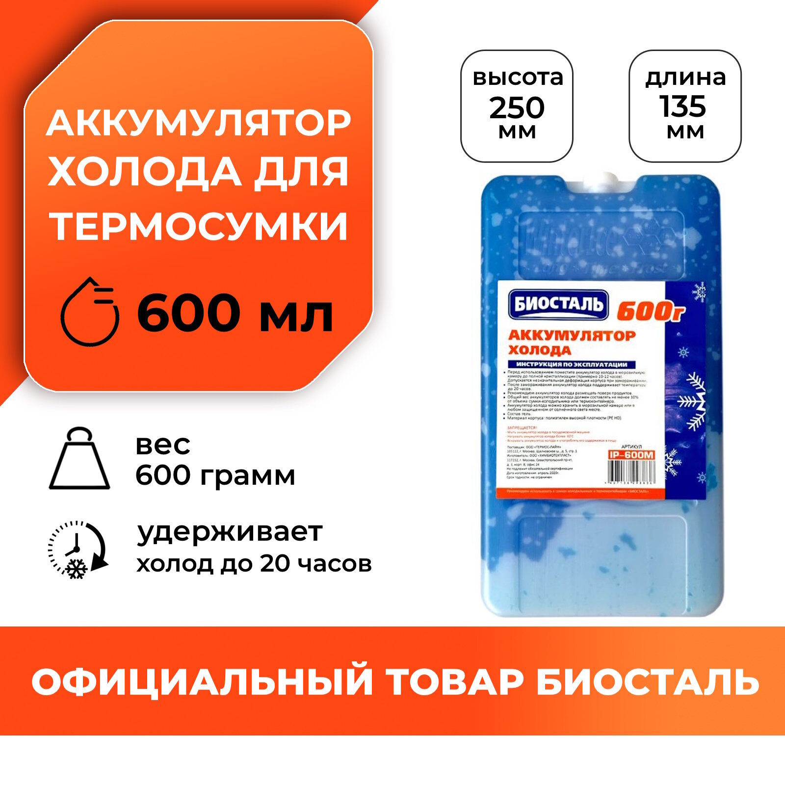 Аккумулятор холода, 600г BIOSTAL