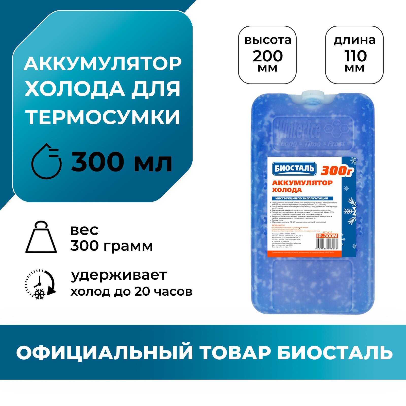 Аккумулятор холода BIOSTAL IP-300M, 300 г