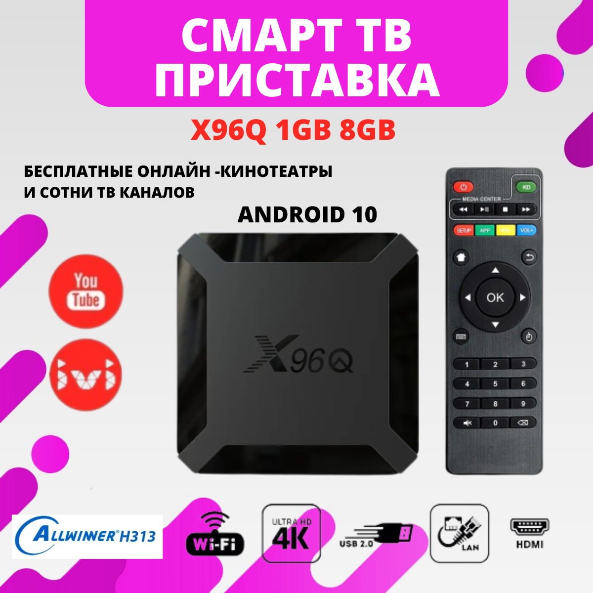 Смарт ТВ приставка X96Q 1/8 интересное: