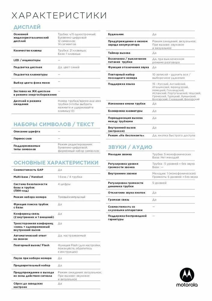 2. Трубка кладется в базу неудобно и держится в ней слабовато. Приноровиться можно, но тот же Панасоник сидит в базе надежнее. 3. Дороже (несущественно) конкурентов, м.б. потому, что Моторола только один телефон на Маркете. |