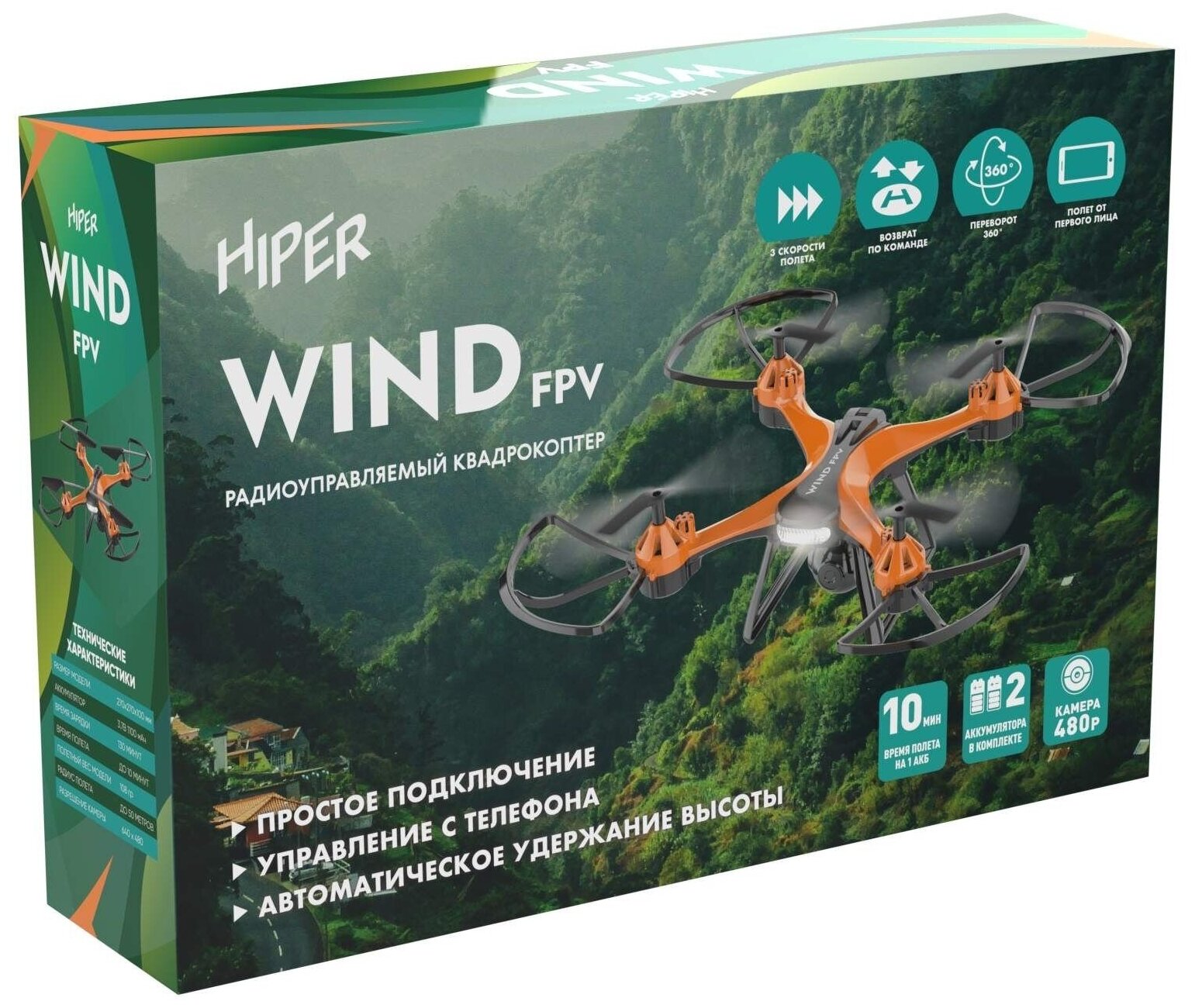 Квадрокоптер Hiper Wind FPV 480р WiFi ПДУ оранжевый/черный . интересное: