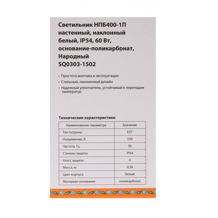 СохранитьTDM св-к НПБ400-1П баня/сауна настен наклон бел. IP54 60W основание-поликарб. Народный SQ0303-1502 интересное: