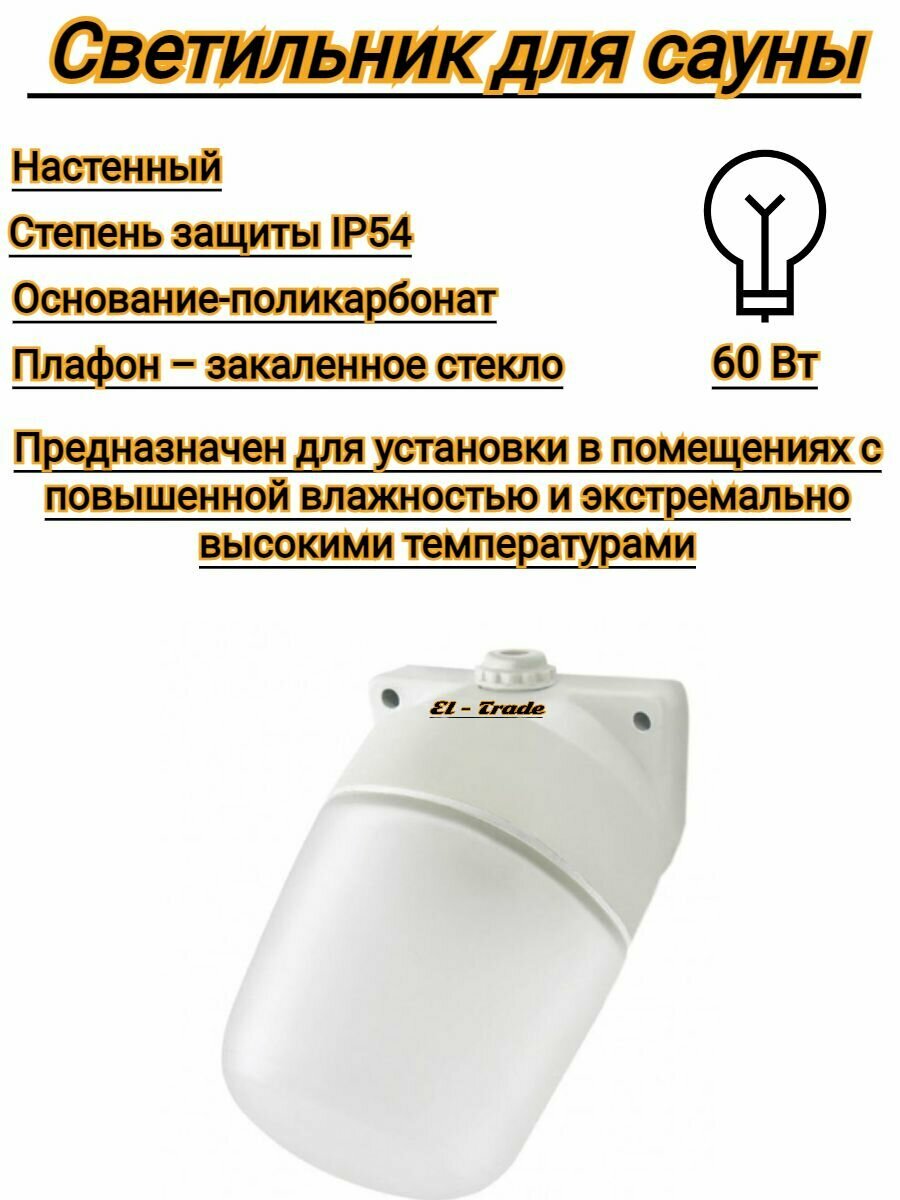 Светильник настенный для сауны TDM НПБ400П-1П (230В, IP54, поликарбонат)