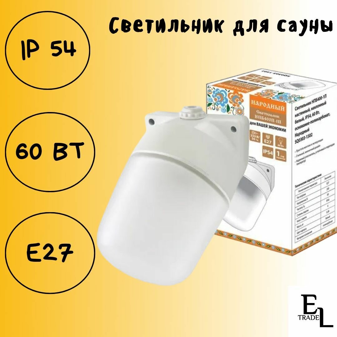 Купить TDM св-к НПБ400-1П баня/сауна настен наклон бел. IP54 60W основание-поликарб. Народный SQ0303-1502