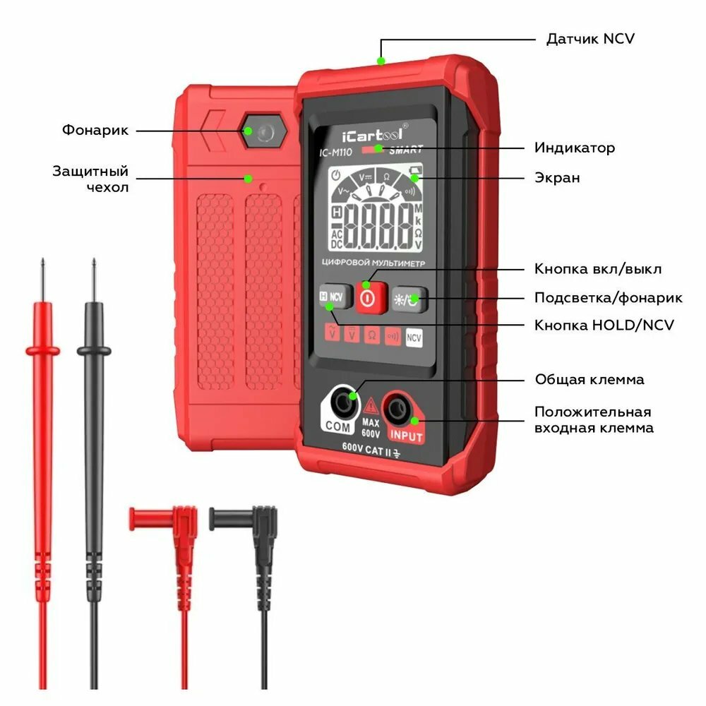 Цифровой смарт мультиметр с подсветкой экрана CATII 600V iCartool IC-M110