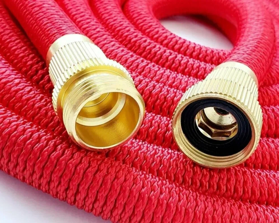 Шланг садовый растягивающийся 100 метров для полива с распылителем Magic Garden Hose Xhose / 100 метров красный с металлическим соединением