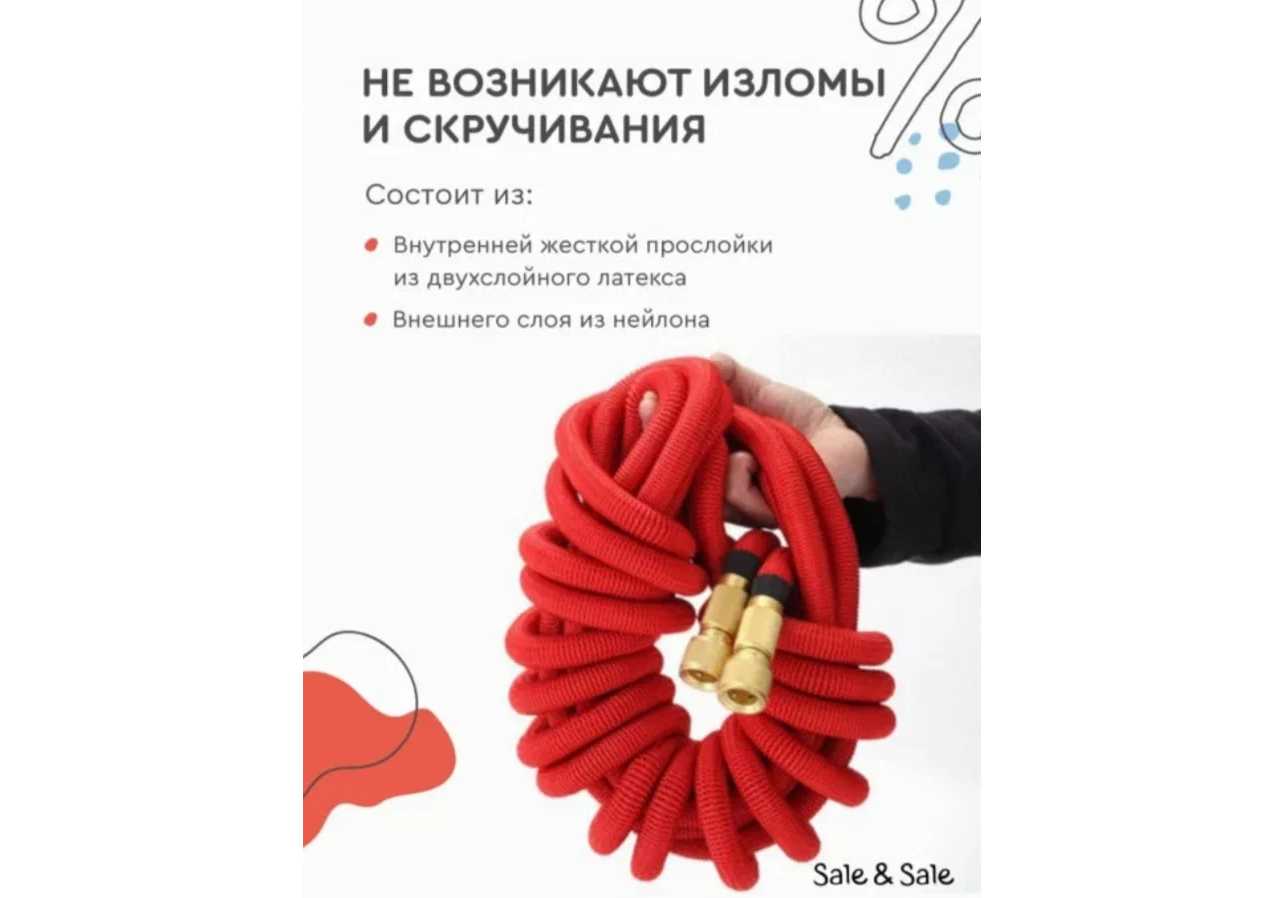 Шланг садовый растягивающийся 50 метров для полива с распылителем с быстросъемом/ 50 метров красный с металлическим соединением, быстросъём