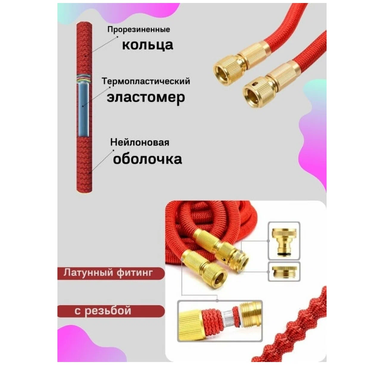 Шланг растягивающийся для полива 25 метров , красный / садовый шланг с насадкой-распылителем