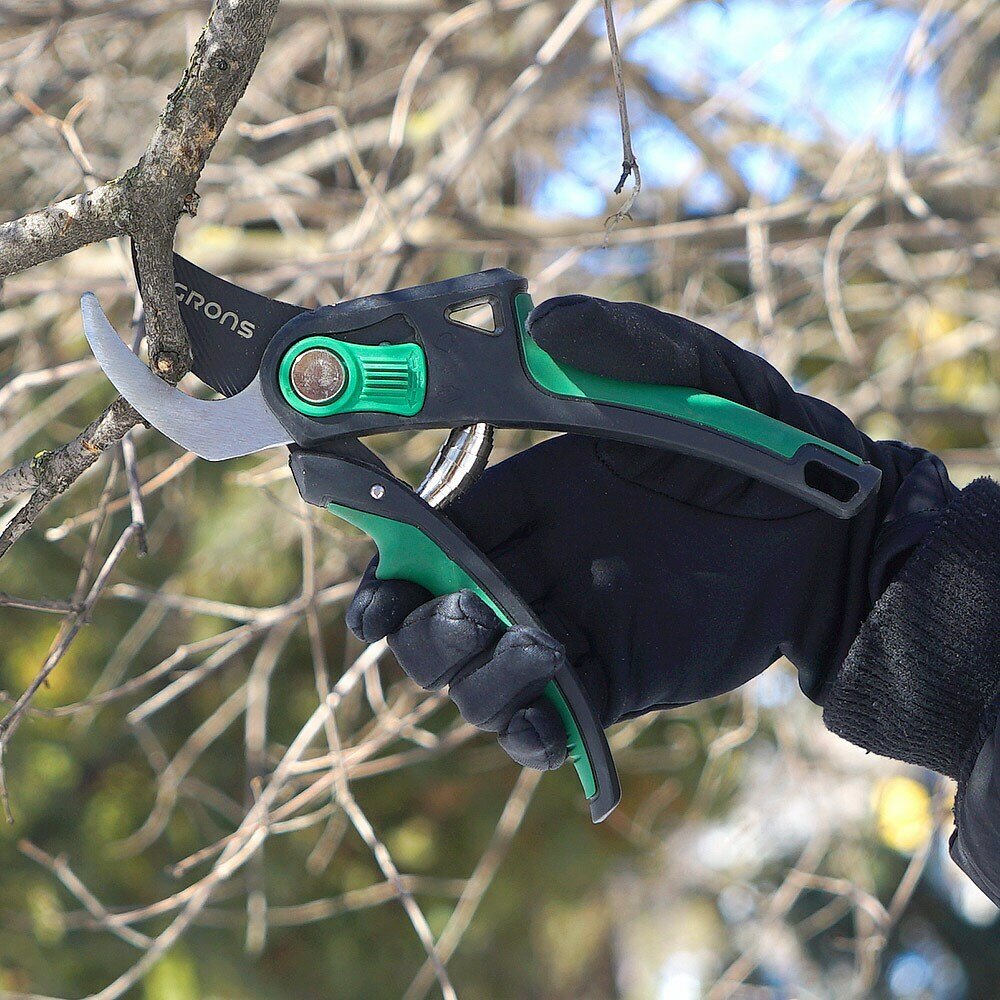 Секатор садовый, веткорез плоскостной из высокоуглеродной стали, рукоятки из алюминия и термопластичной резины, Grons E007, 200мм