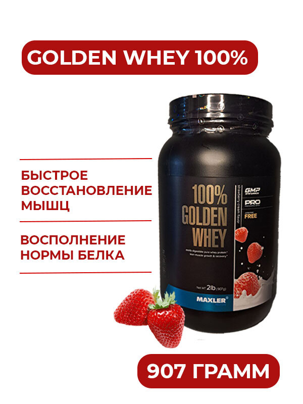 Купить Протеин Maxler 100% Golden Whey New, 907 гр., клубничное мороженое