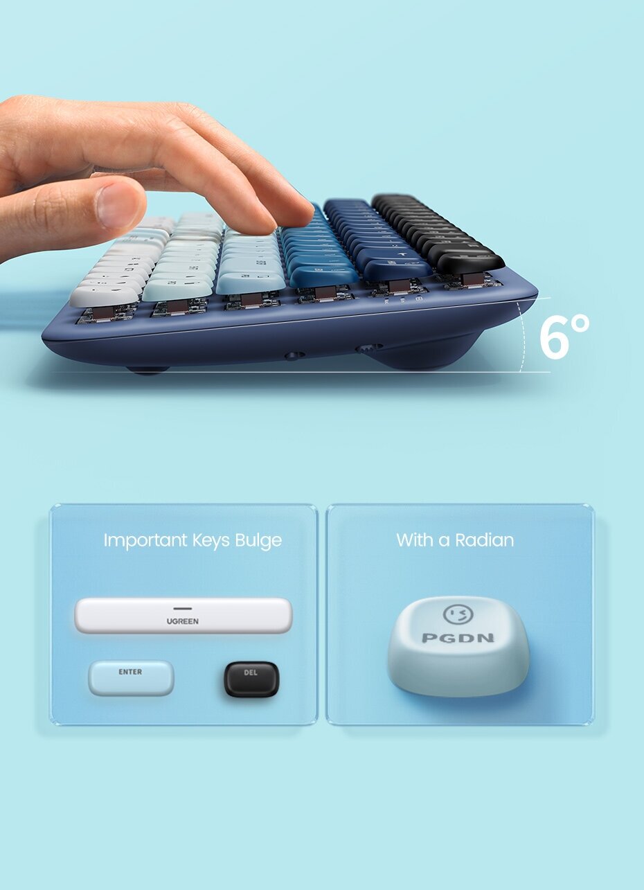 Клавиатура Ugreen KU101 FUN+ Mechanical Keyboard blue механическая usb-c/bluetooth