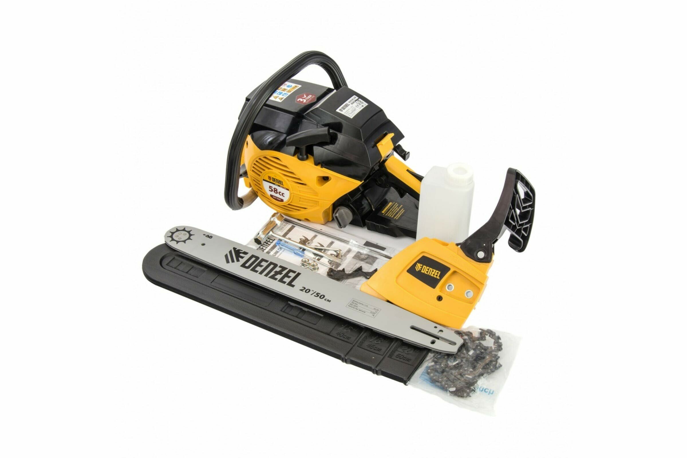 Пила цепная бензиновая DENZEL DGS-5820, шина 50 см, 4.1 л.с, шаг 0.325, 76 звеньев