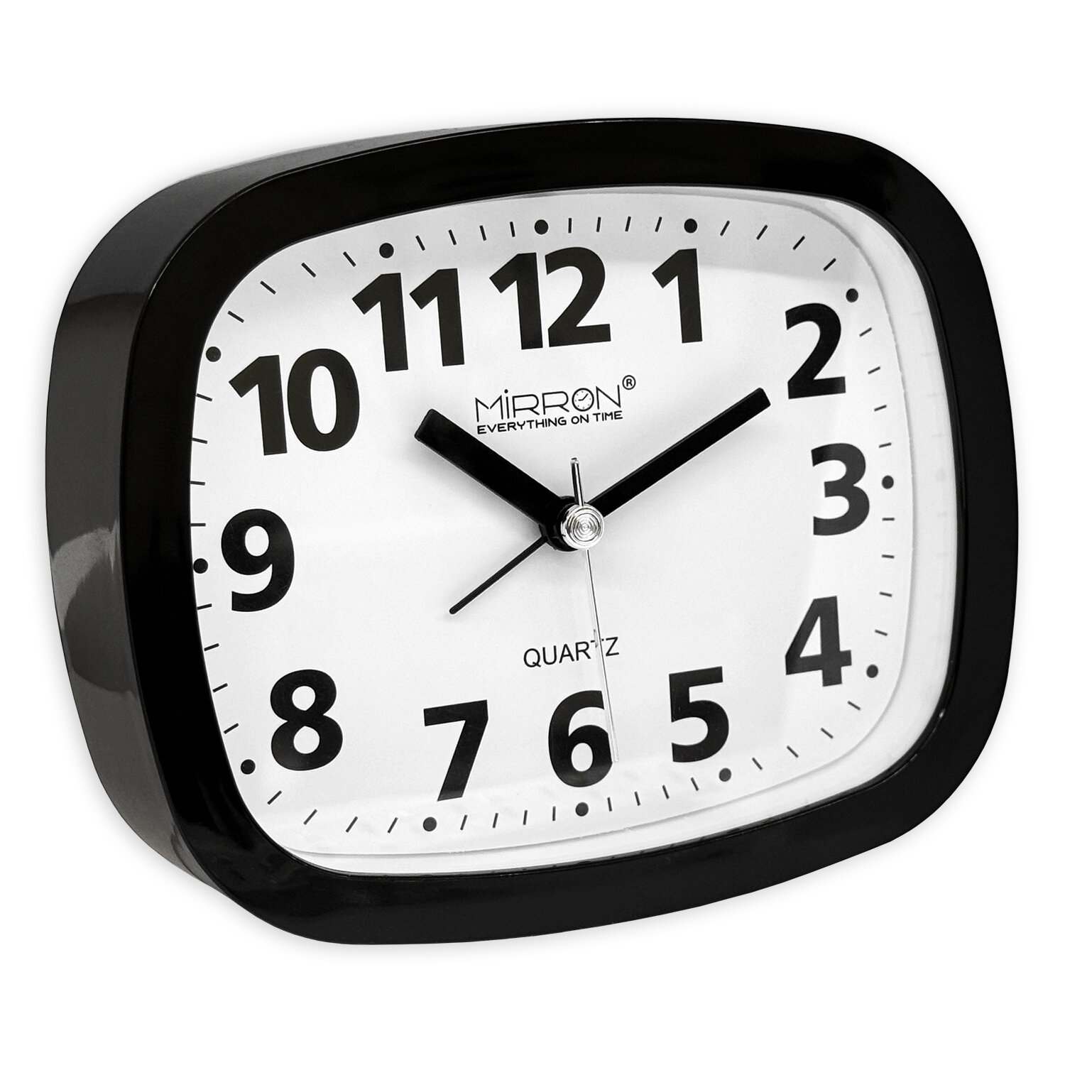 Купить Чёрный будильник MIRRON 8342 Ч/Чёрный цвет корпуса/Белый (светлый) циферблат/Часы на тумбочку/Будильник в детскую комнату/Будильник в спальню/Классический, обычный будильник