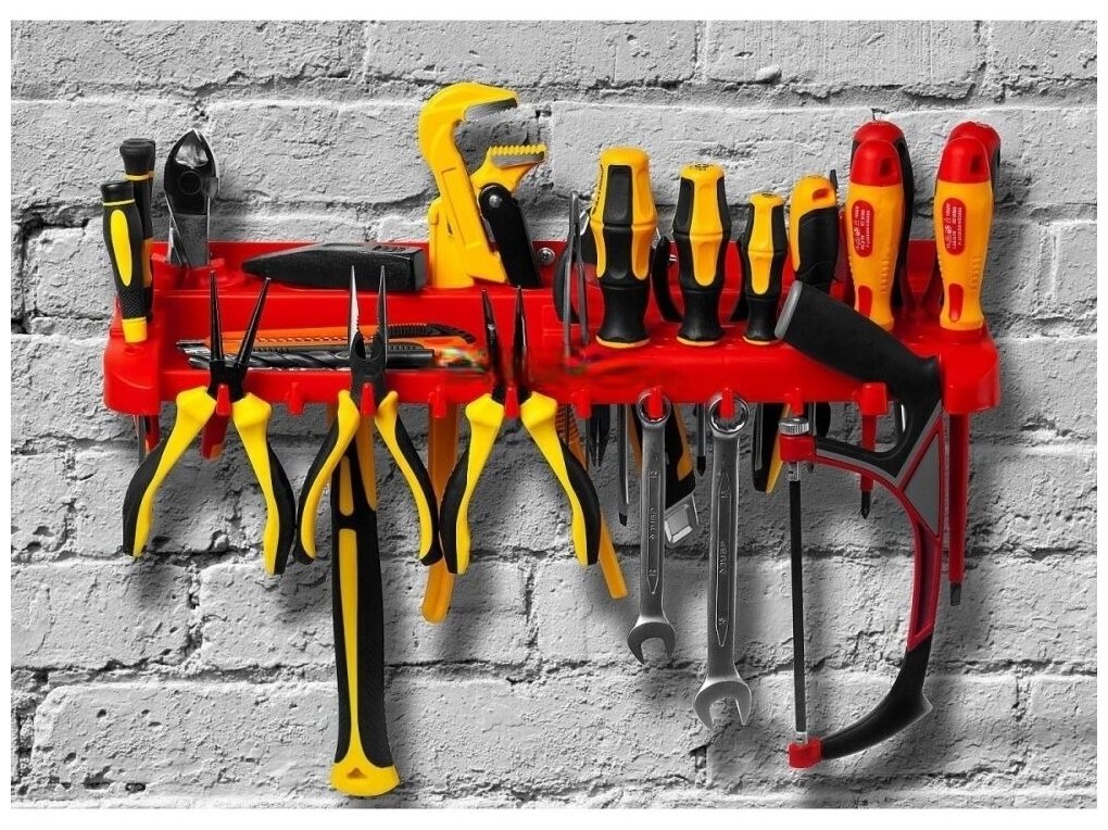 | Плюсы: | Обычная пластиковая полка. Для отвёрток самое то. |