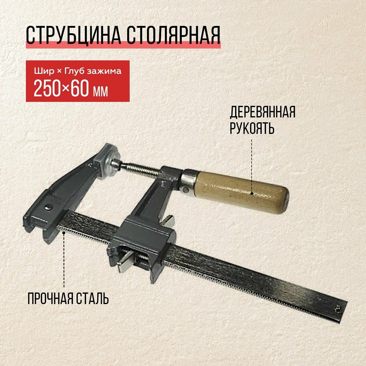 СохранитьСтрубцина F-образная 60х250мм Струбцина столярная с пружинным фиксатором, Практик интересное: