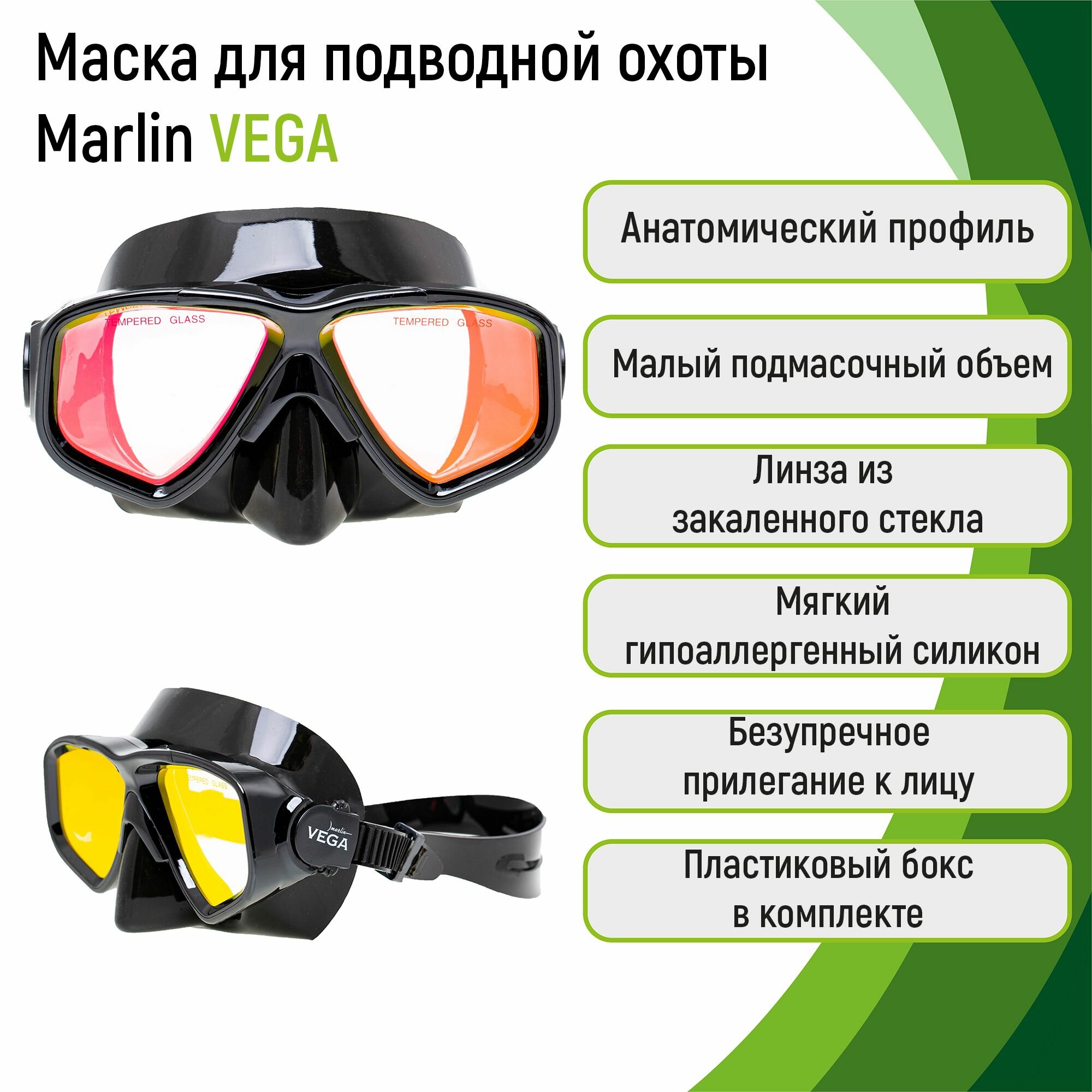 Маска для подводной охоты Marlin VEGA BLACK + YELLOW LENS интересное: