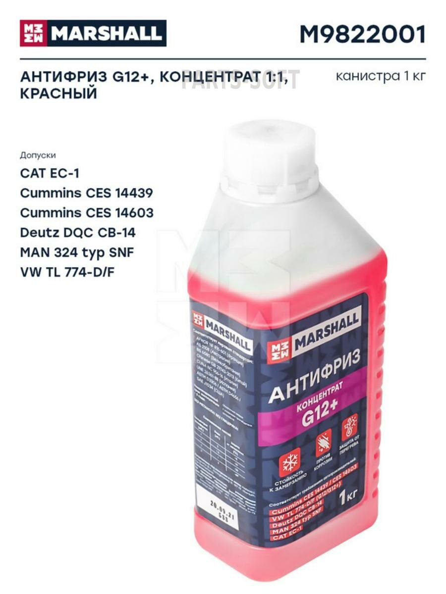 MARSHALL MARSHALL Антифриз G12+, концентрат 11, красный, канистра 1 кг. MARSHALL M9822001