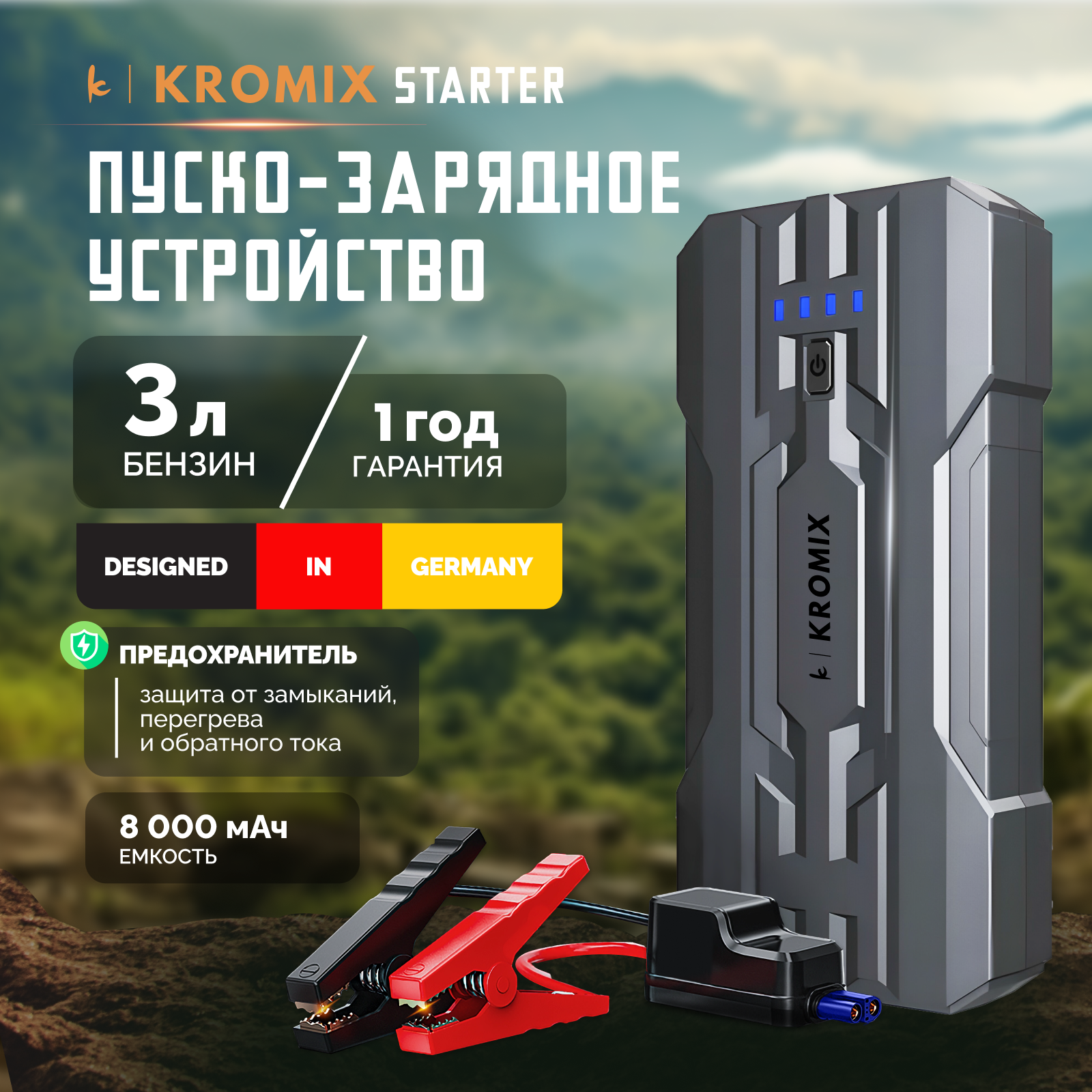 Пусковое устройство Kromix R22301 для автомобиля, аккумуляторов/Пуско-зарядное устройство/Автозапуск для автомобиля/Power Bank 8000 mAh