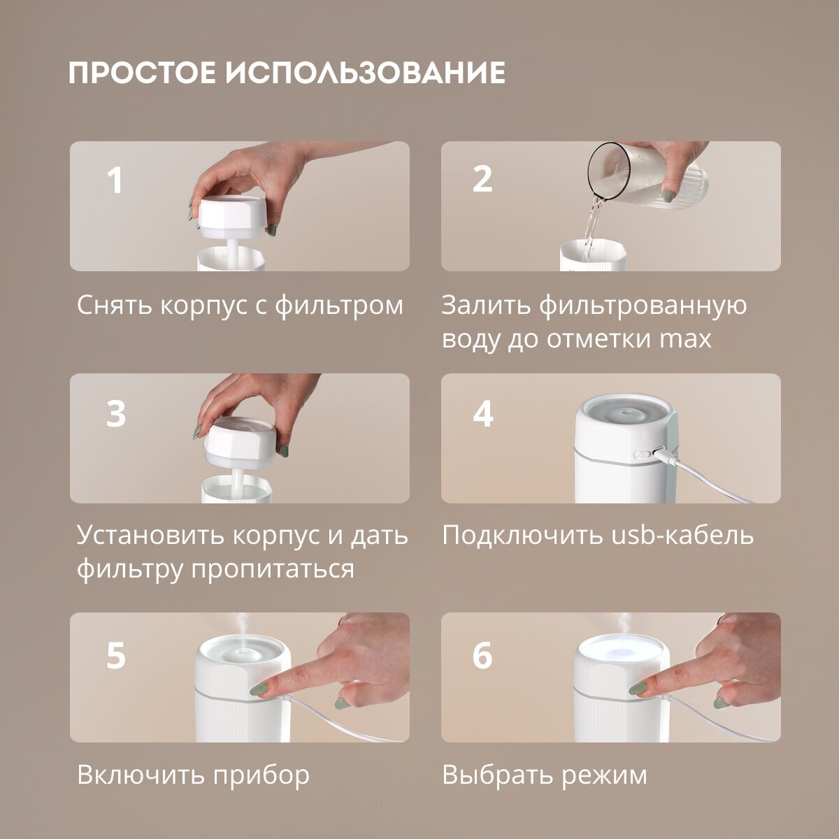 Отдельно порадовал размер и вес устройства - можно брать его с собой куда угодно. Ходила в гости, где нет увлажнителя - взяла его с собой и спокойно спала в увлажненной комнате ?
