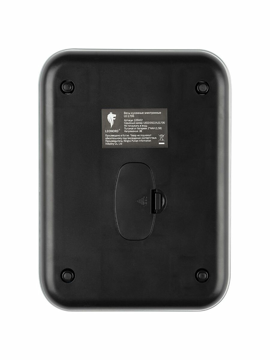 | Дополнительная информация | Весы кухонные LEONORD LE-1706 до 10кг стекло черный |