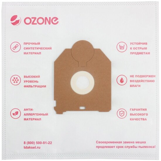 Пылесборник OZONE M-46, синтетический материал, многослойный, микропоры, материал фланца картон
