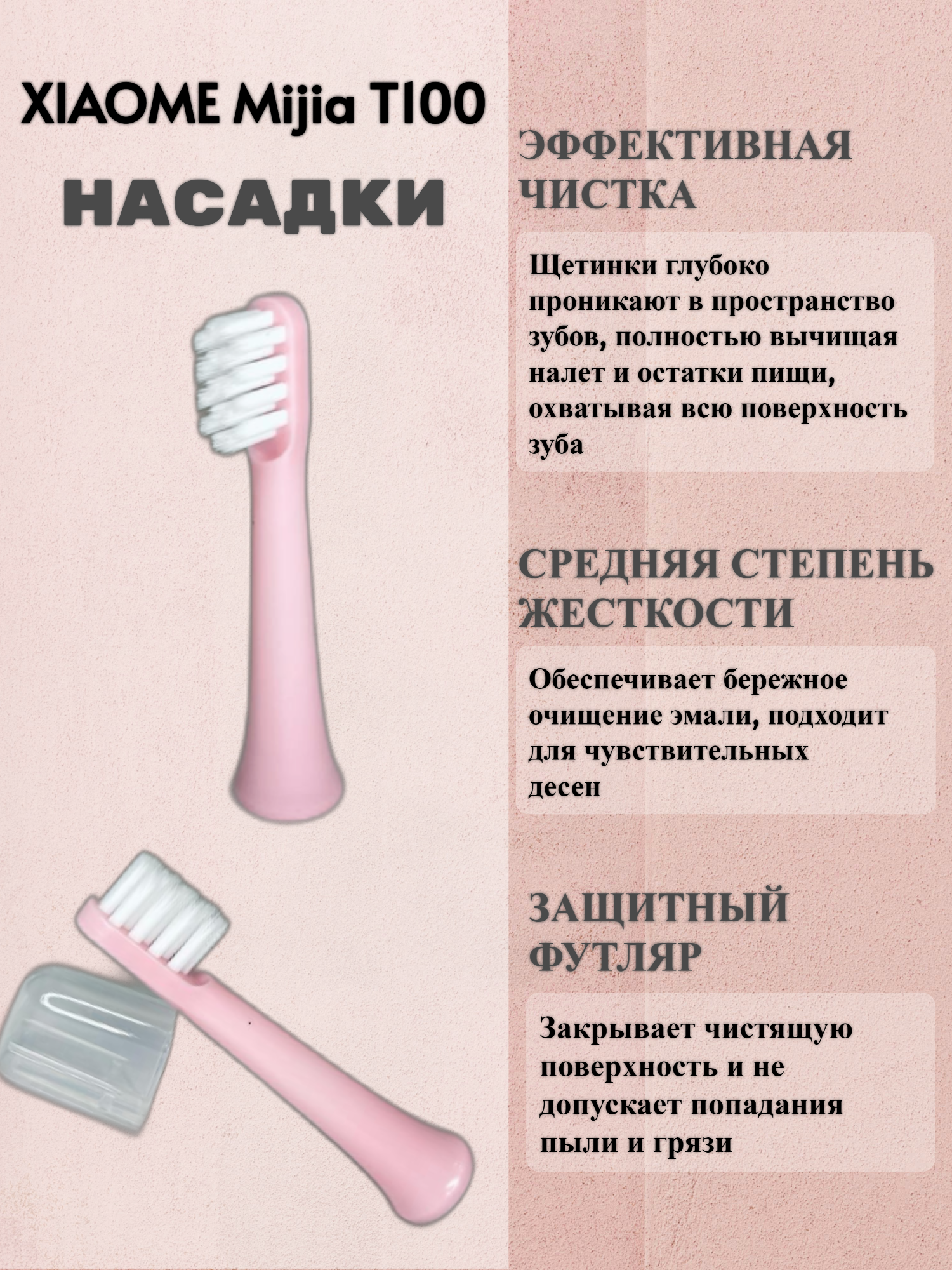 Сменные насадки для электрической зубной щетки Xiaomi Mijia T100 (розовая) интересное: