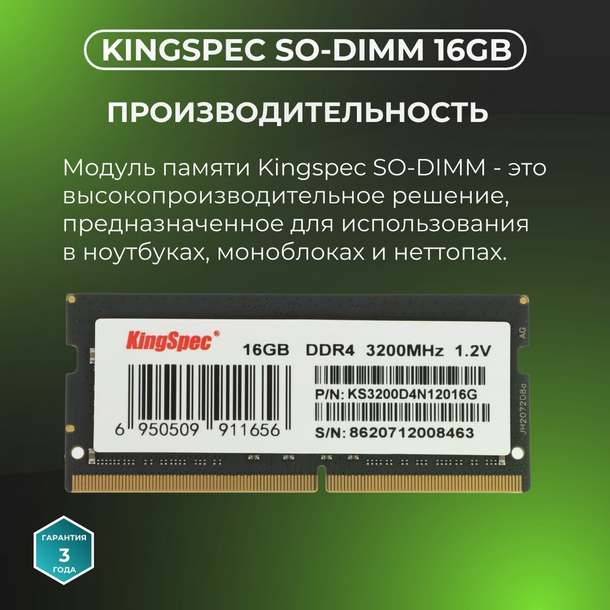 Модуль памяти KINGSPEC KS3200D4N12016G DDR4 - 16ГБ 3200, SO-DIMM, Ret